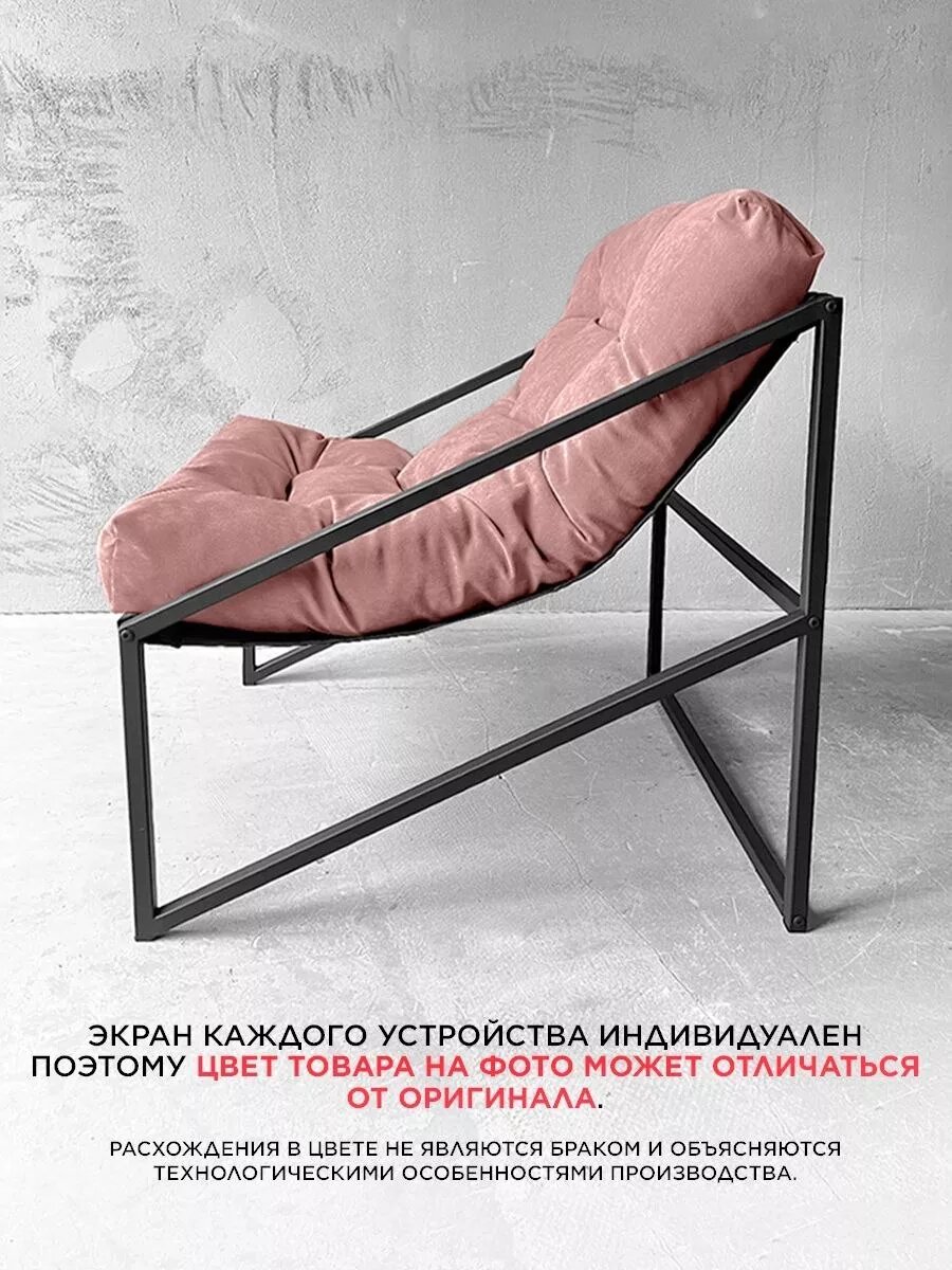 Отзывы на Кресло мягкое удобное для отдыха, уличное, на балкон, на веранду, в стиле лофт, минимализм, Слэш + Велюр розовый