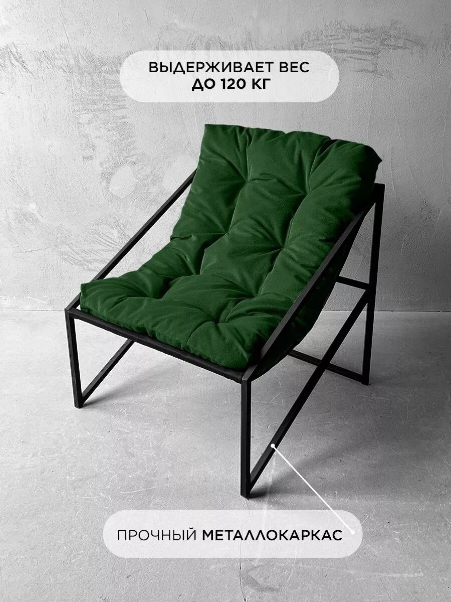 Отзывы на Кресло мягкое удобное для отдыха, уличное, на балкон, на веранду, в стиле лофт, минимализм, Слэш + Велюр зеленый