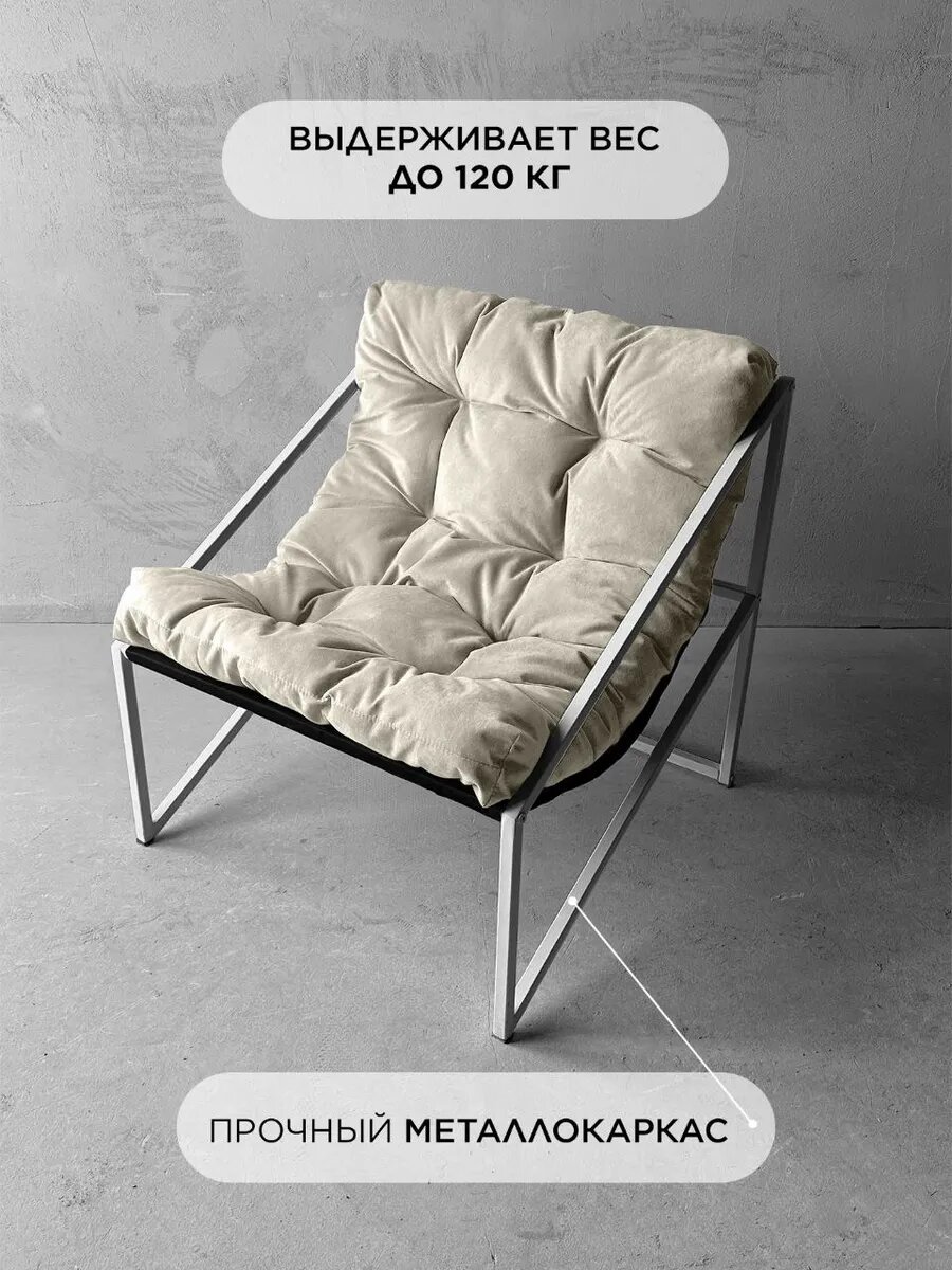 Отзывы на Кресло мягкое удобное для отдыха, уличное, на балкон, на веранду, в стиле лофт, минимализм, Слэш + велюр молочный