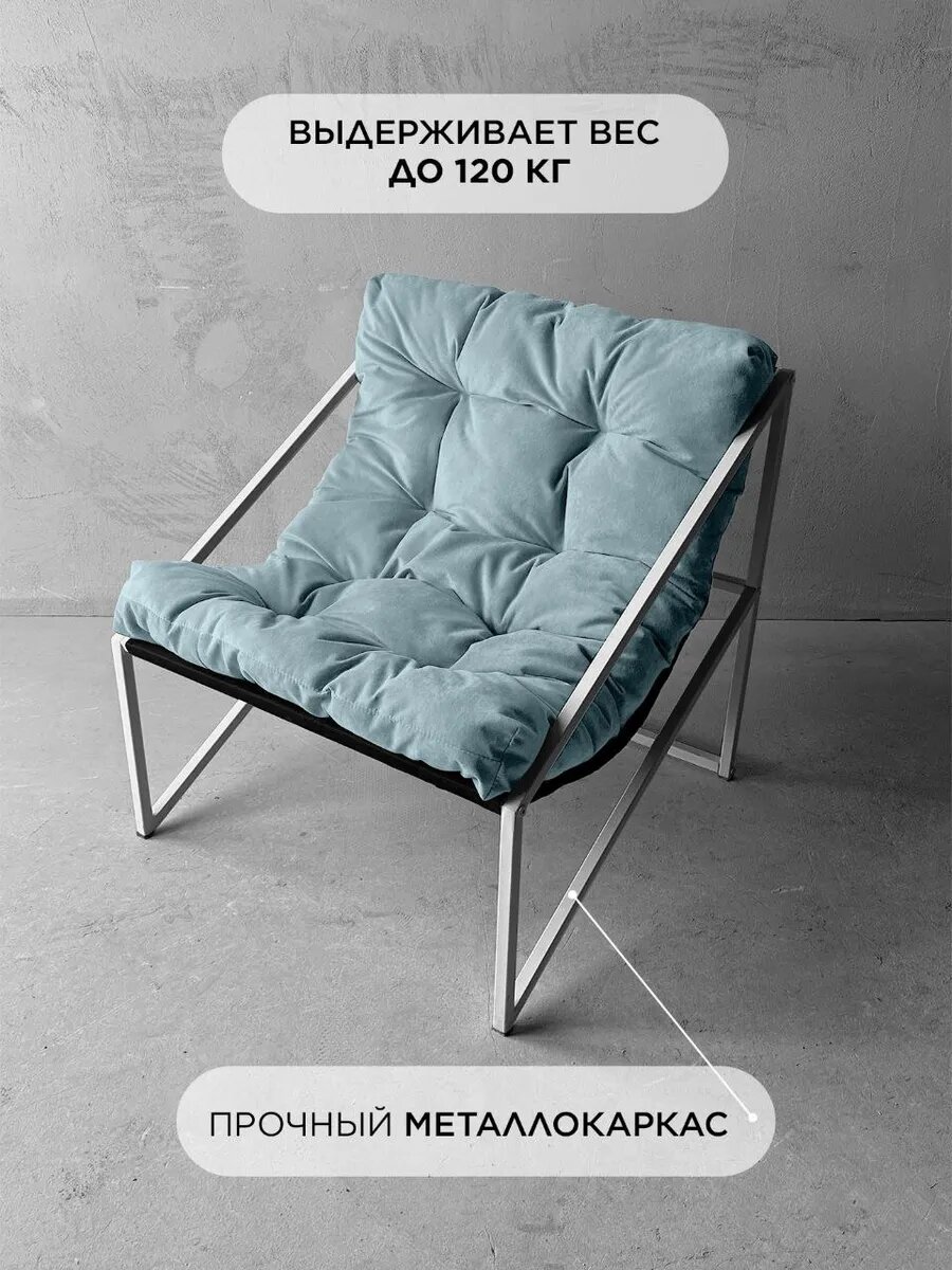 Отзывы на Кресло мягкое удобное для отдыха, уличное, на балкон, на веранду, в стиле лофт, минимализм, Слэш + велюр голубой