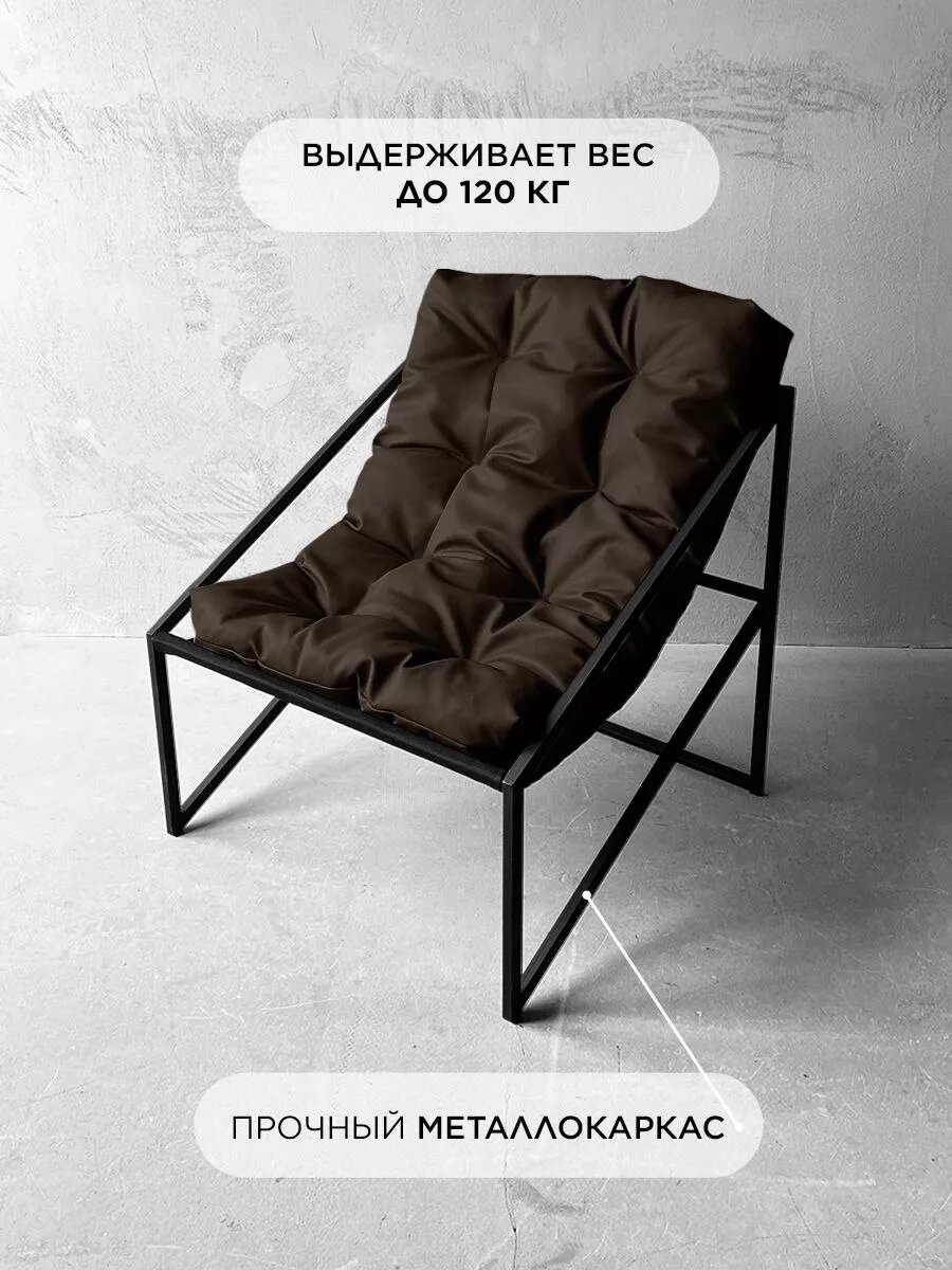 Отзывы на Кресло мягкое удобное для отдыха, уличное, на балкон, на веранду, в стиле лофт, минимализм, Слэш + Кожзам коричневый