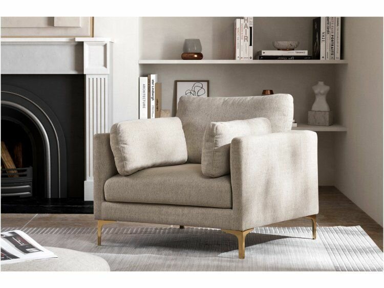 Кресло мягкое Эдита для отдыха дома с декоративной подушкой, высокие ножки, 73х74х86 см, Коричневый, велюр