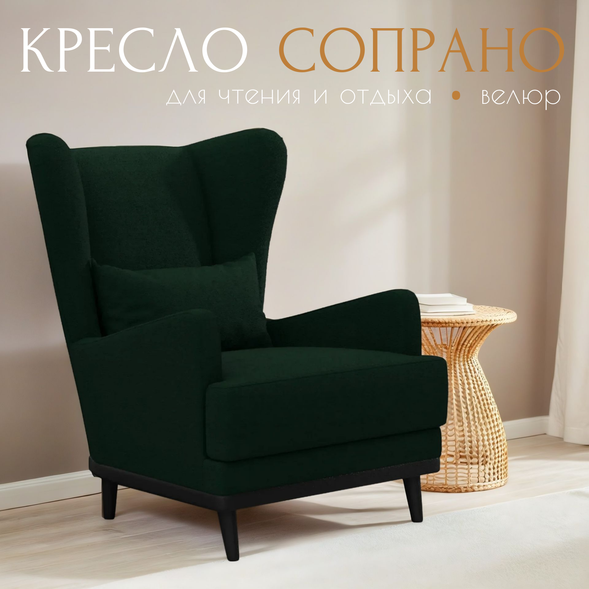 Отзывы на Кресло Сопрано мягкое, для отдыха и чтения, велюр, цвет: Тёмно-зелёный