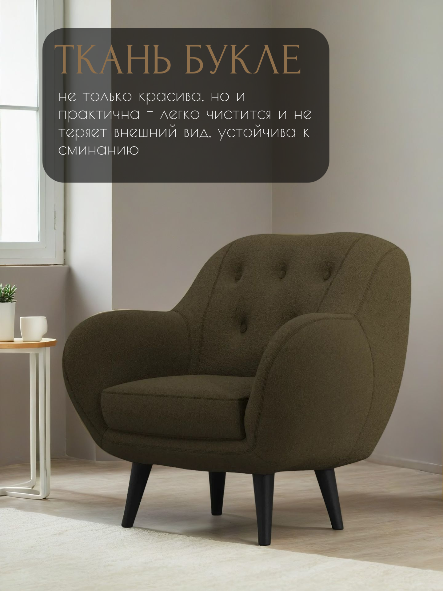 10 цен на Кресло Афина интерьерное мягкое, кресло букле барашек для дома, цвет: Хаки, зелёный