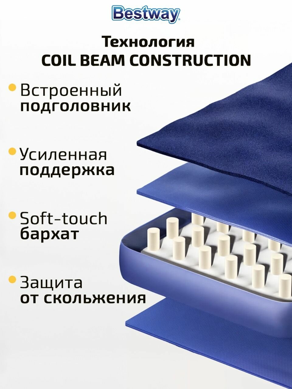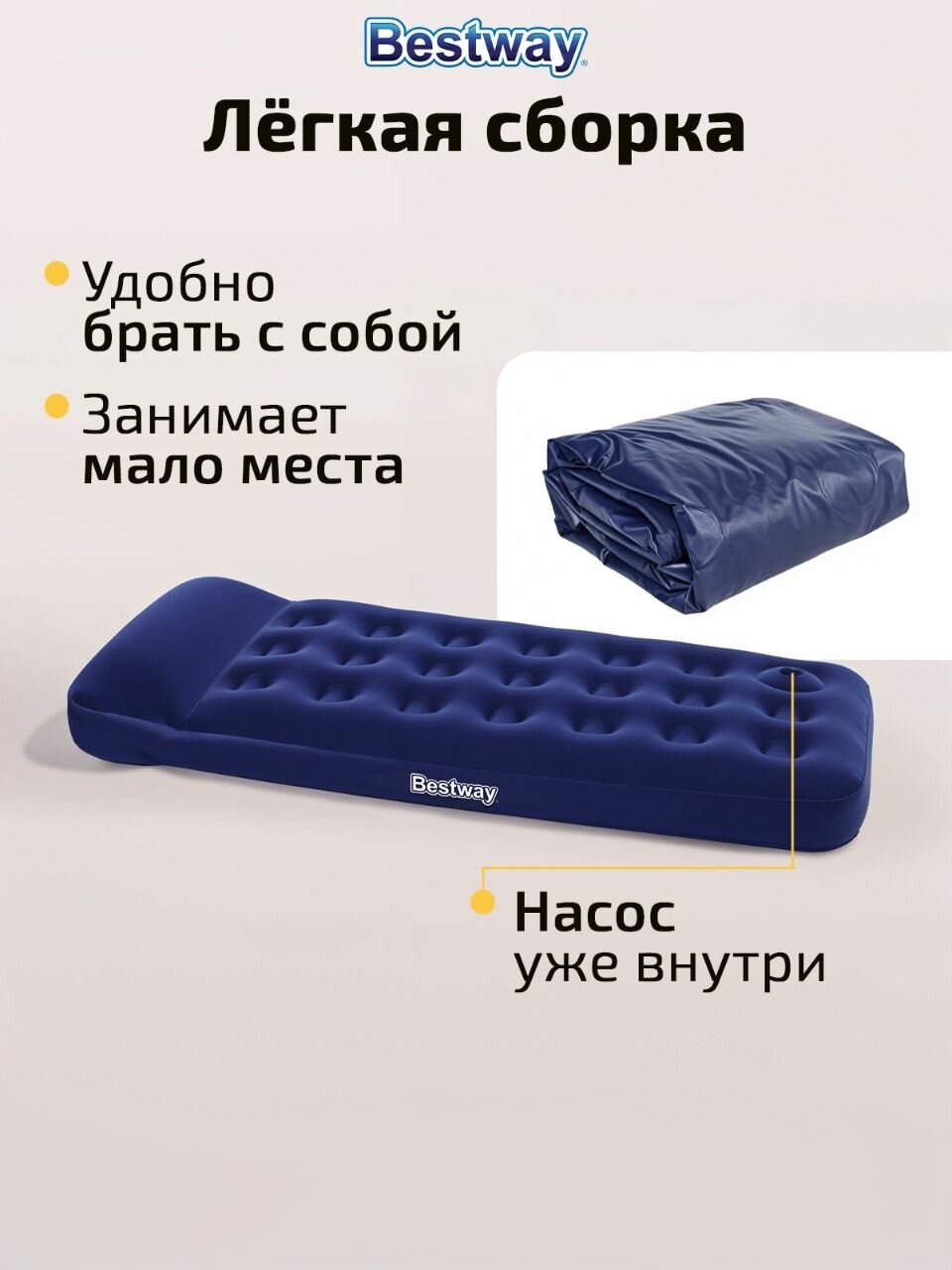 Односпальный матрас надувной Bestway 185х76х28 см, с подголовником, туристический для сна, до 130 кг информация:
