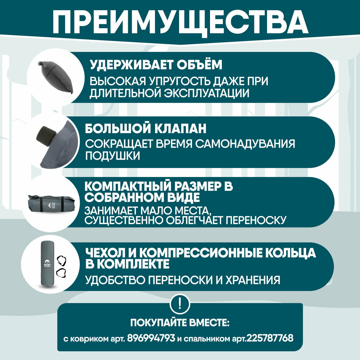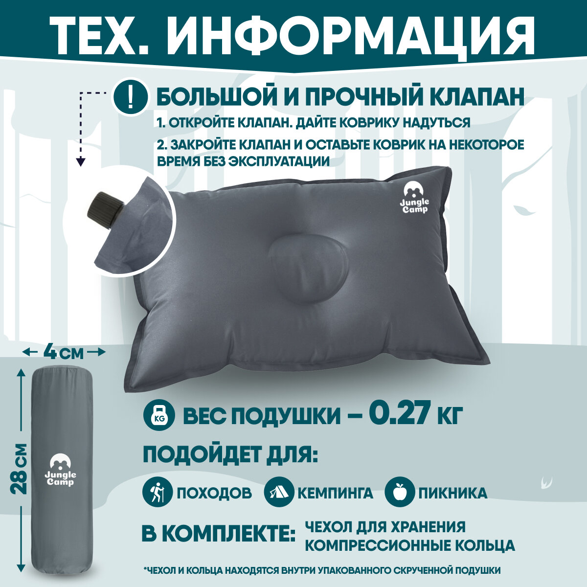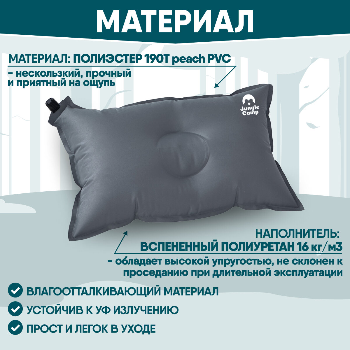 Отзывы на Подушка JUNGLE CAMP "Camper", самонадувающаяся, флокированная, 42х32 см, серая