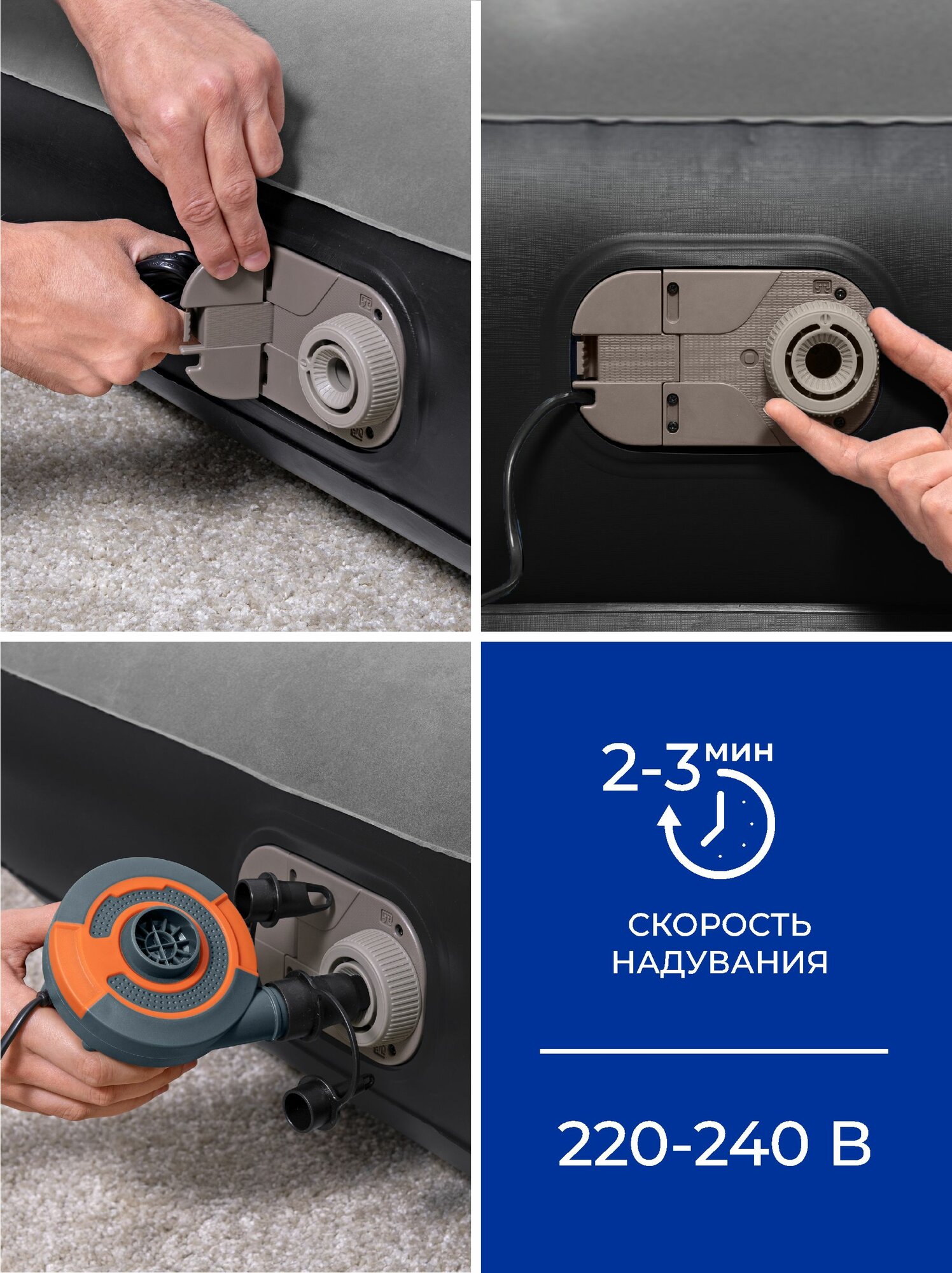 Матрас надувной полутораспальный со встроенным электронасосом 188 х 99 х 30 см, Bestway Tritech Twin (67556) информация: