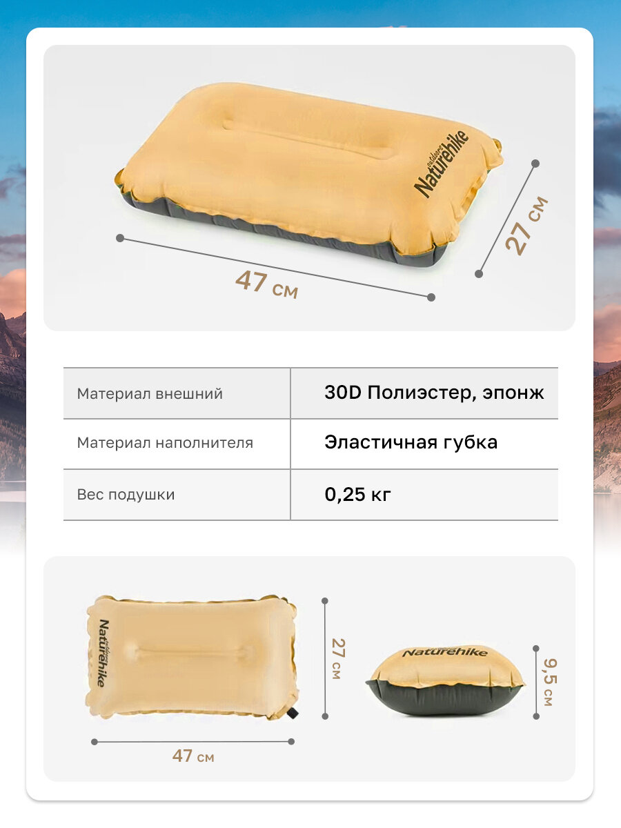 Отзывы на Подушка Naturehike, желтая, самонадувная, 46 см x 27 см x 9,50 см