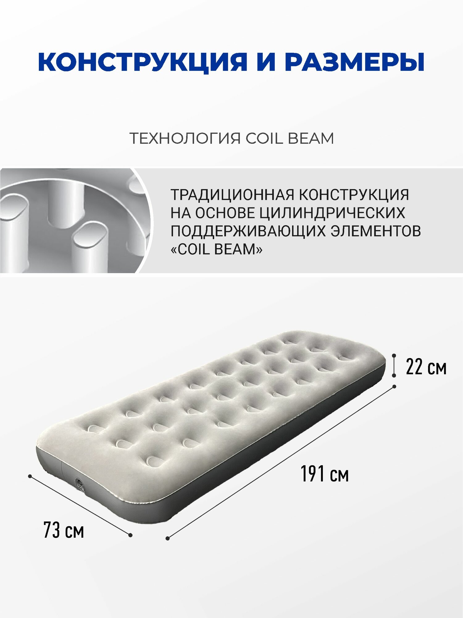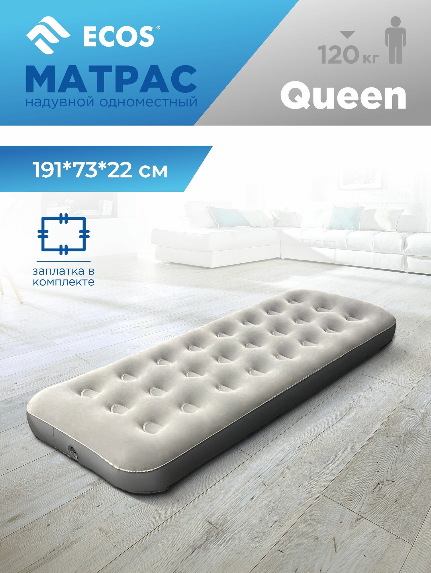 Матрас надувной одноместный 191 х 73 х 22 см, Ecos Single (993169) информация: