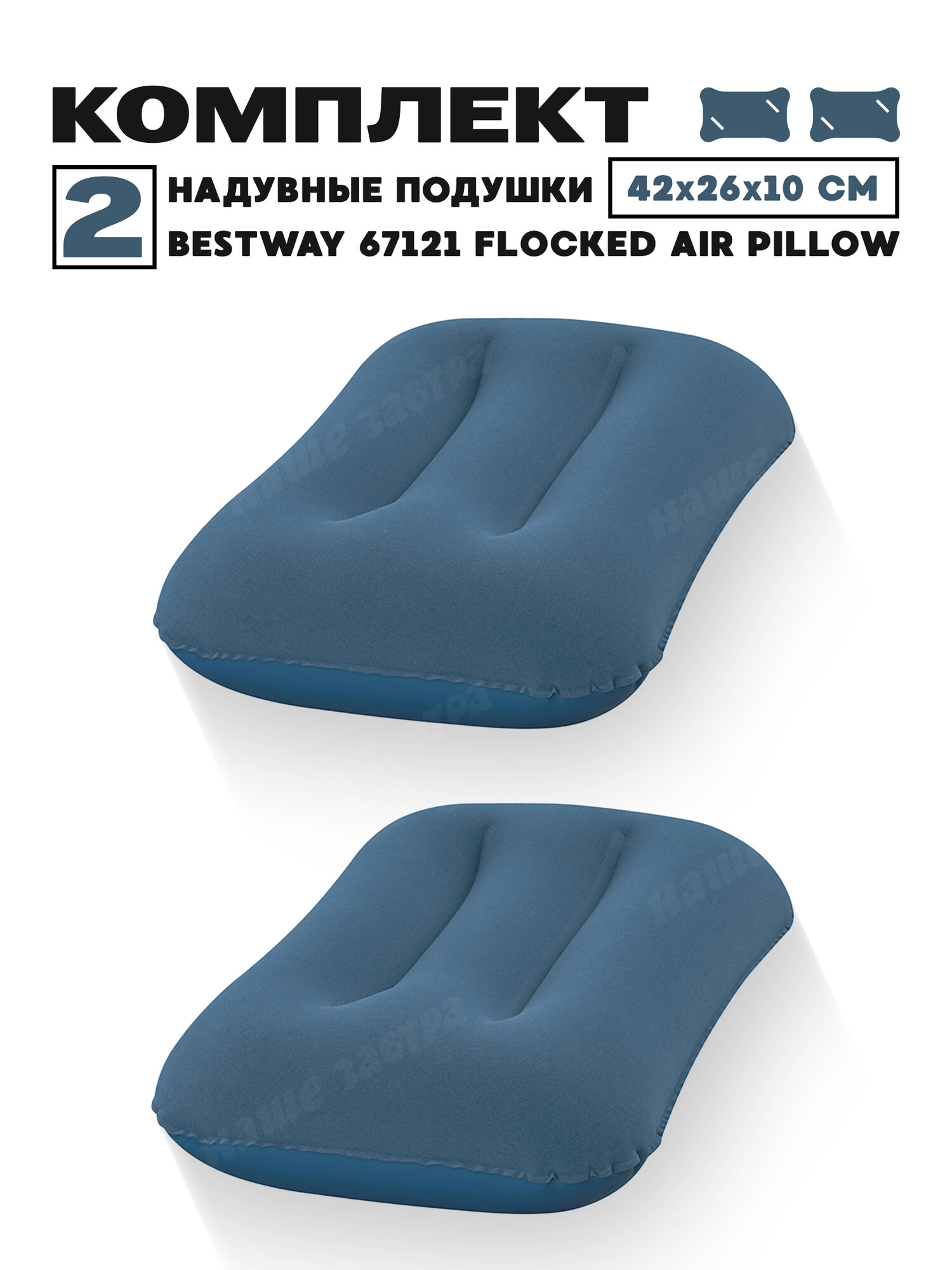 Подушка надувная Bestway Flocked Air Pillow 67121, 42x26x10 см, 2 шт. информация: