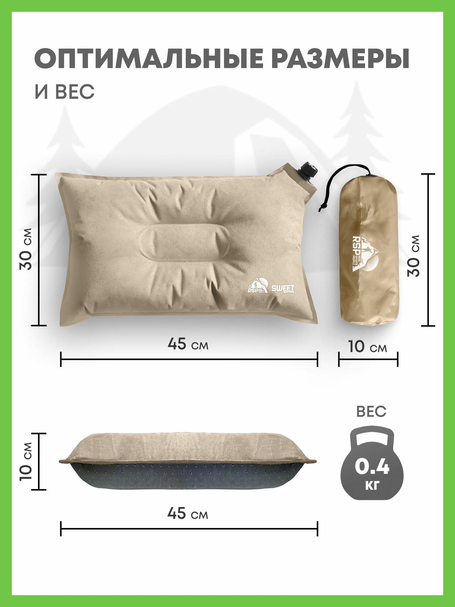 Отзывы на Подушка самонадувающаяся RSP Sweet (бежевая) с велюровым покрытием