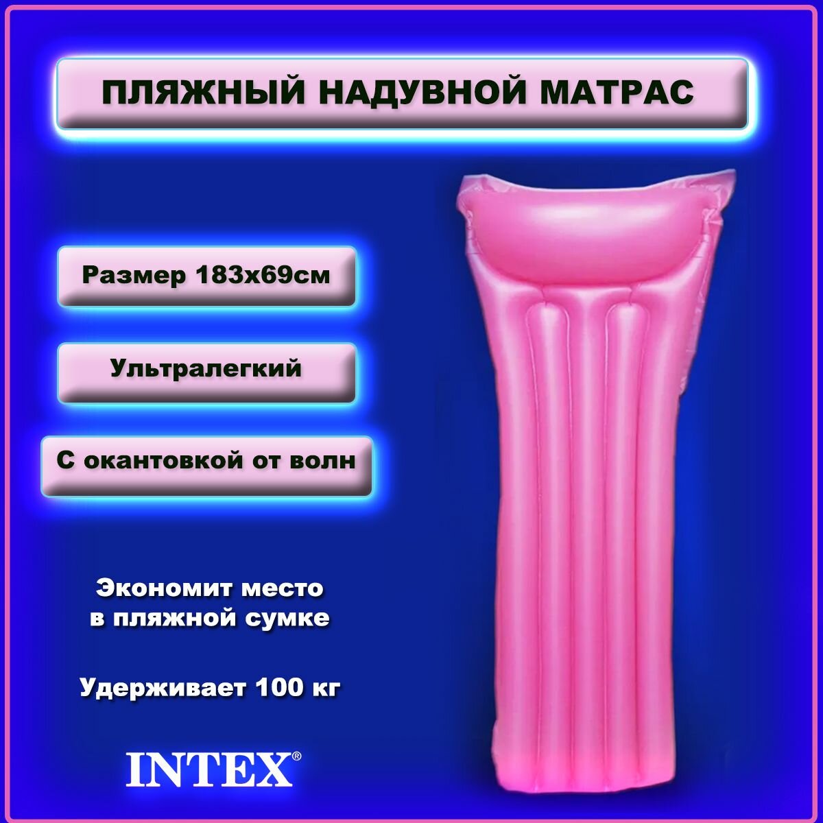 Матрас надувной для плавания Intex 59703 розовый, с подголовником, до 100 кг, для детей и взрослых информация: