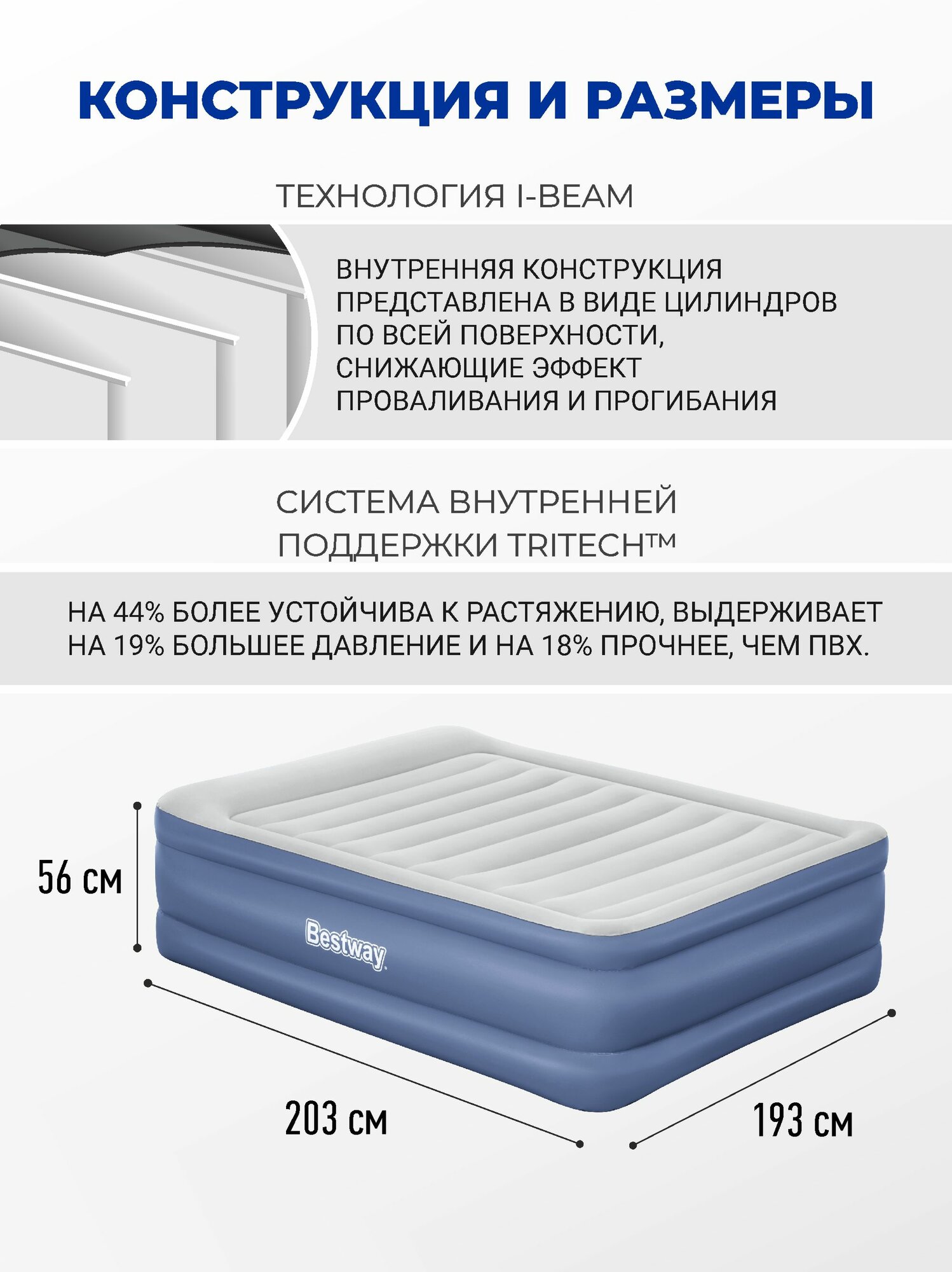 Матрас надувной двуспальный со встроенным электронасосом и подголовником 203 х 152 х 61 см, Bestway (67690) информация: