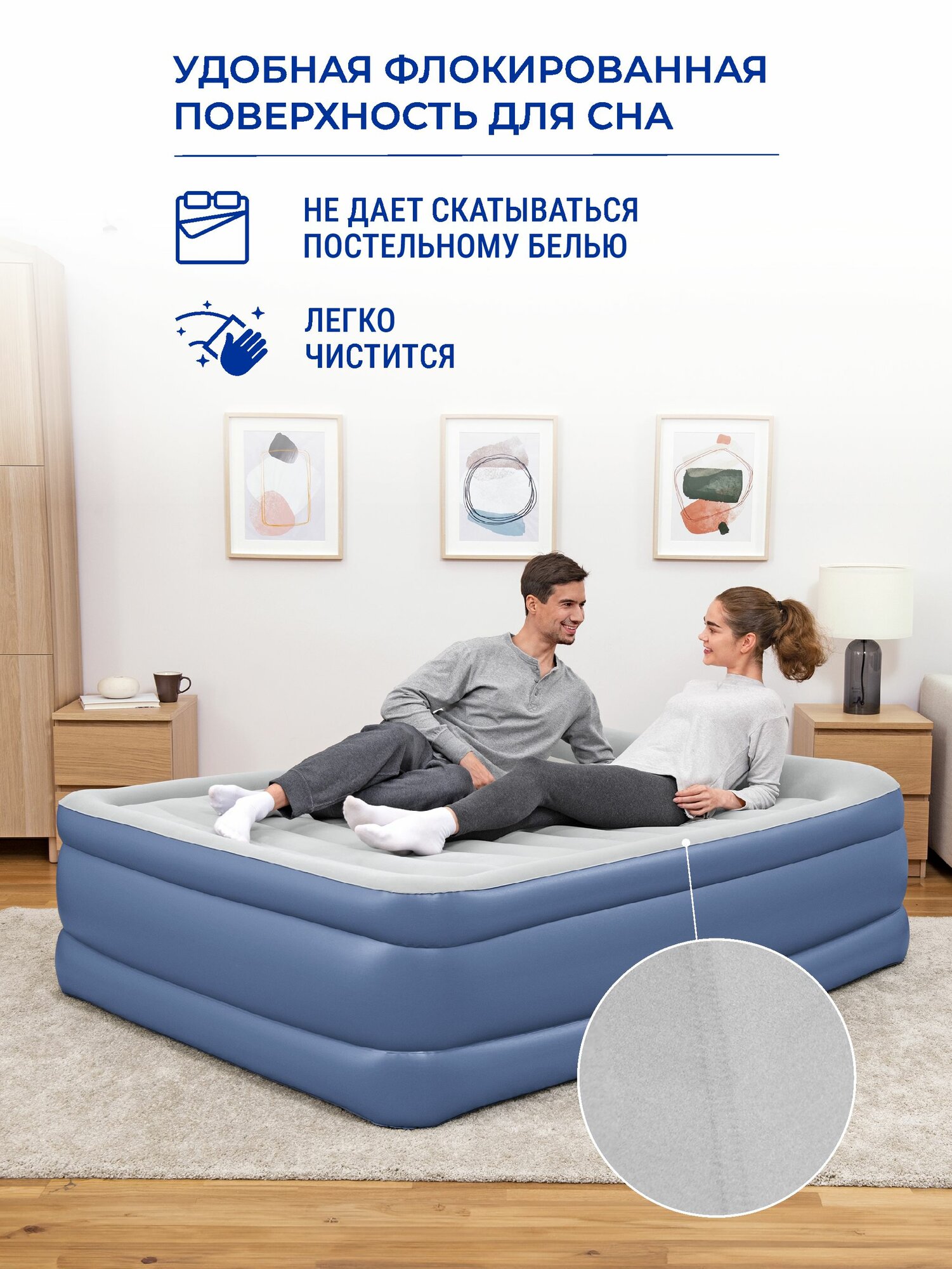 10 цен на Матрас надувной двуспальный со встроенным электронасосом и подголовником 203 х 152 х 61 см, Bestway (67690)