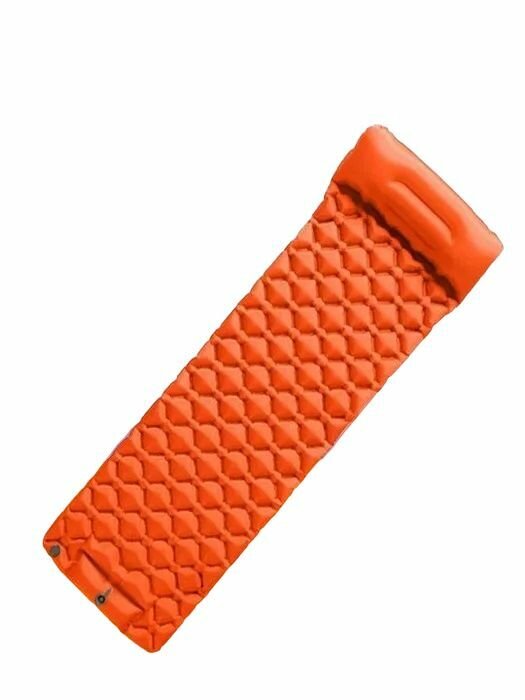 10 цен на Надувной матрас одноместный, оранжевый / Надувной коврик для сна / Походный коврик с подушкой
