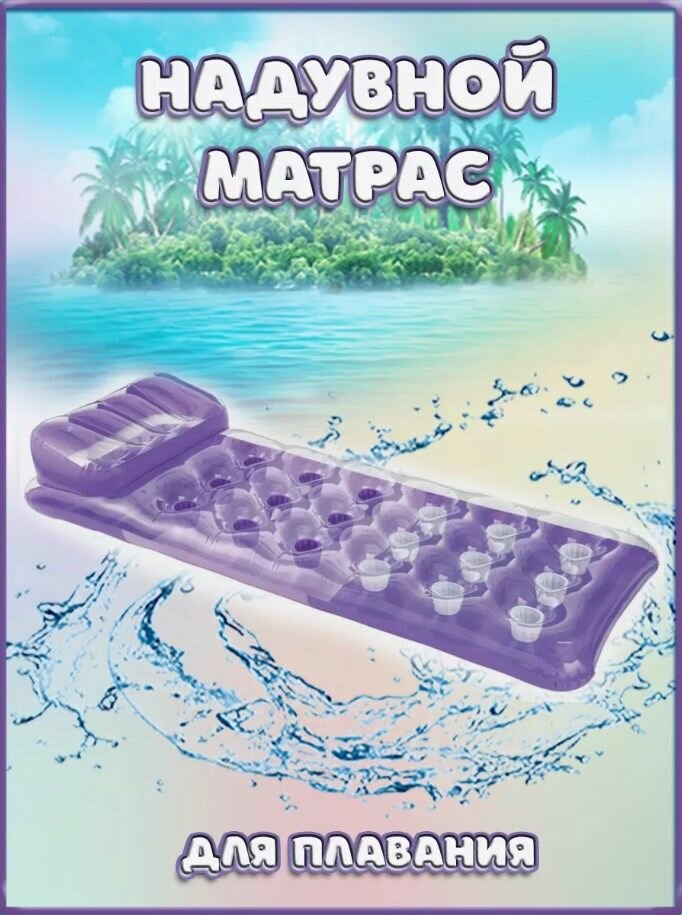 Отзывы на Матрас надувной для плавания "Бар" Intex 58890 фиолетовый, с подголовником и подстаканником, 188х71 см
