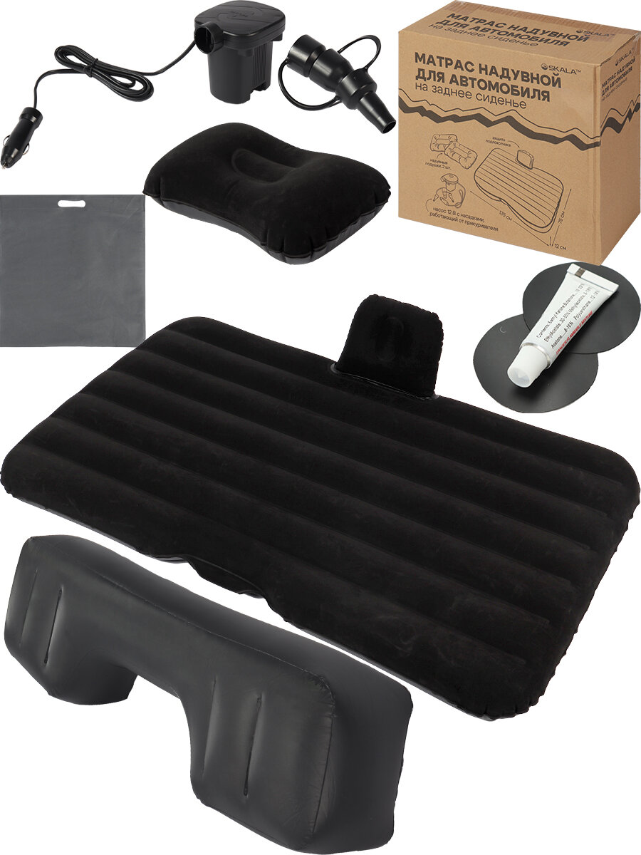 10 цен на Автомобильный надувной матрас SKALA (в комплекте насос, 3 насадки, надувная подушка, сумка) 135х75х12 см, черный