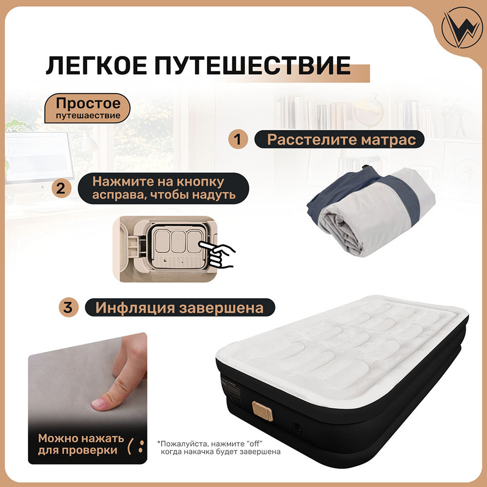 Матрас Надувной Односпальный С Насосом 190х100х40 Черное информация: