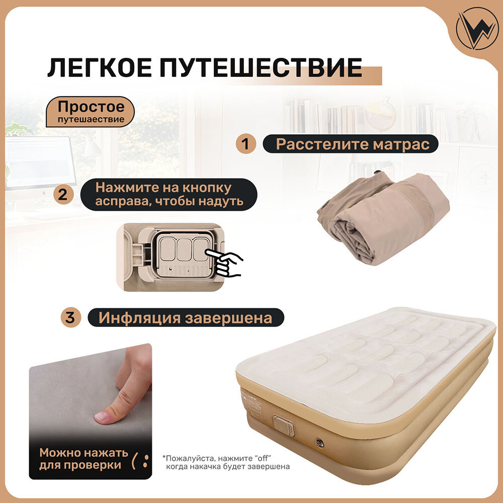Матрас Надувной Односпальный С Насосом 190х100х40 Бежевый информация: