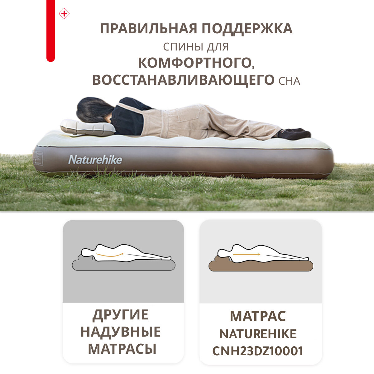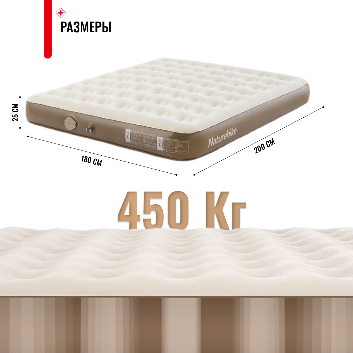 Отзывы на Матрас надувной Naturehike Built-in pump PVC raised inflatable mattress CNH23DZ10001 (Коричневый/бежевый, 200х180х25)