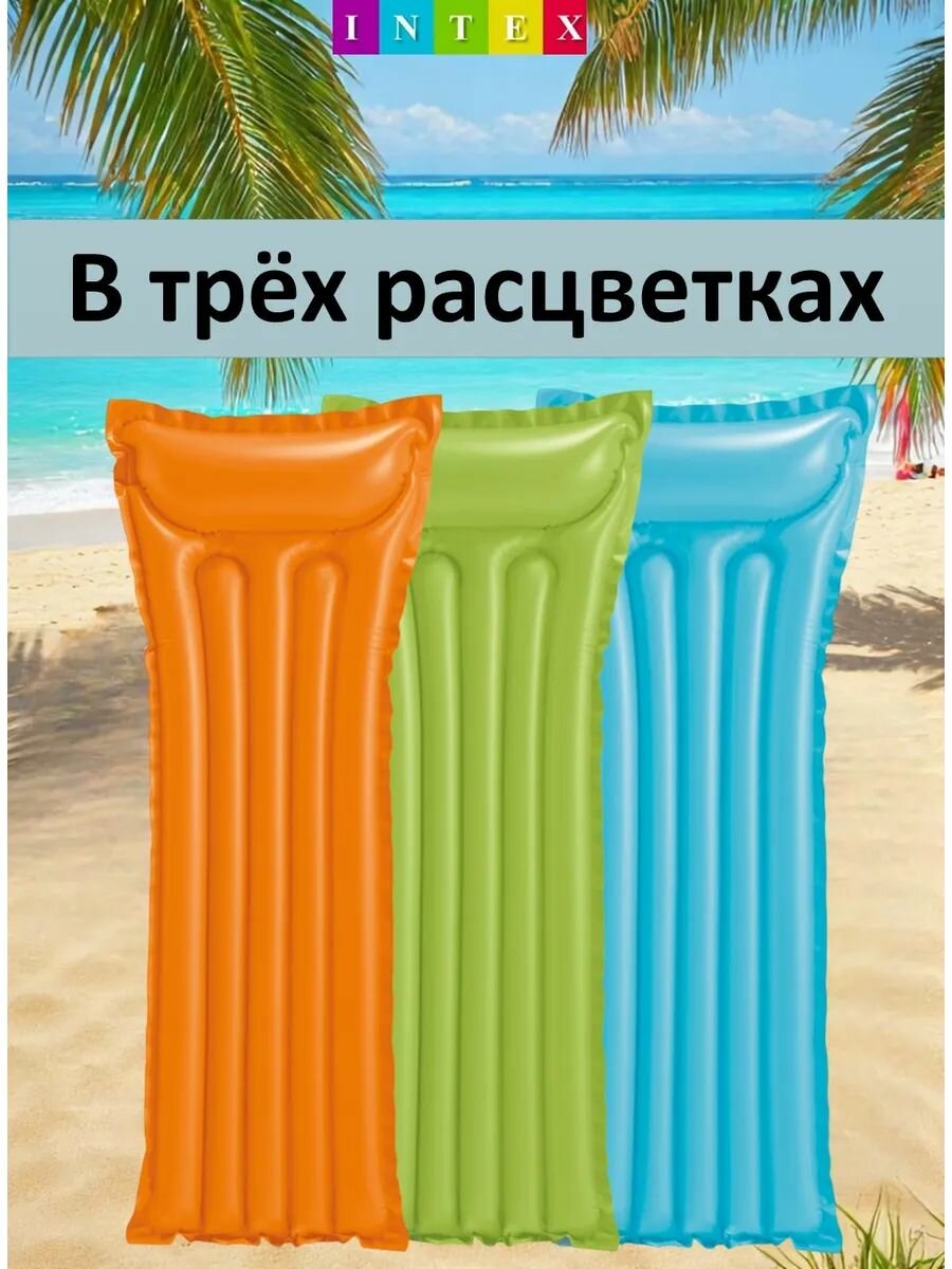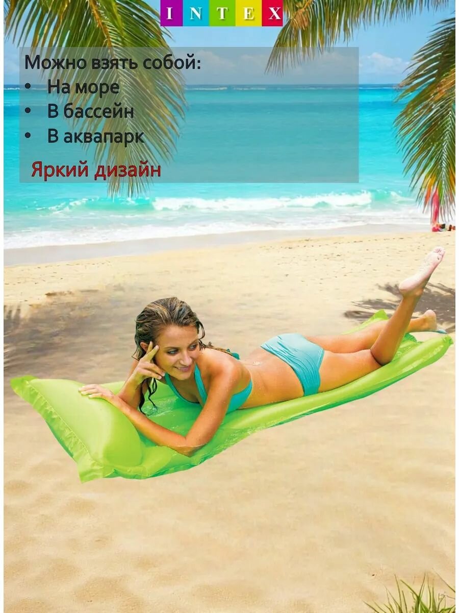 Отзывы на Intex Надувной матрас для плавания и купания с подголовником для бассейна и пляжа 183х69см, до 100кг зеленый 59703NP