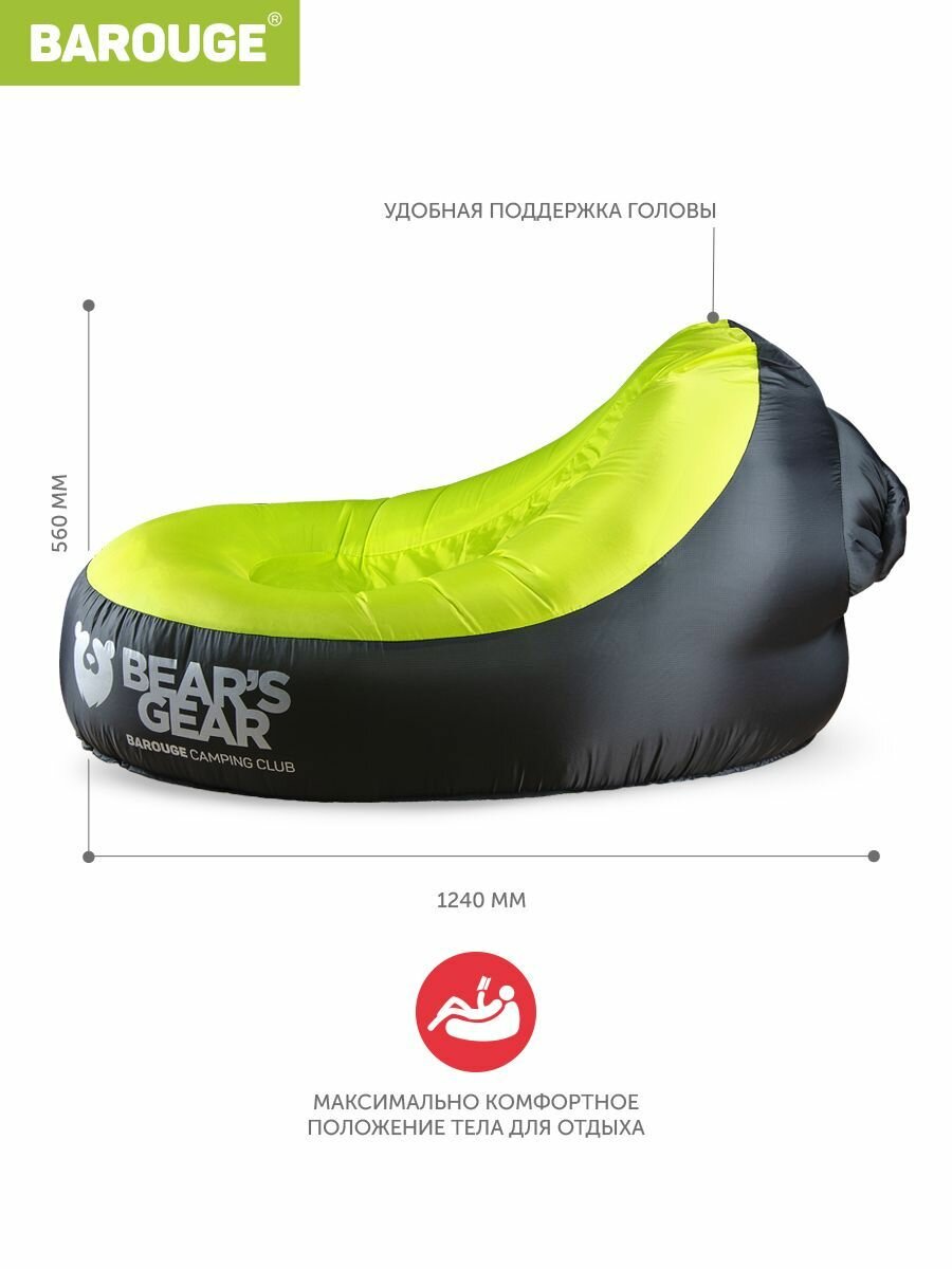Кресло надувное BEAR'S GEAR одноместное, цвет зеленый, до 200 кг информация: