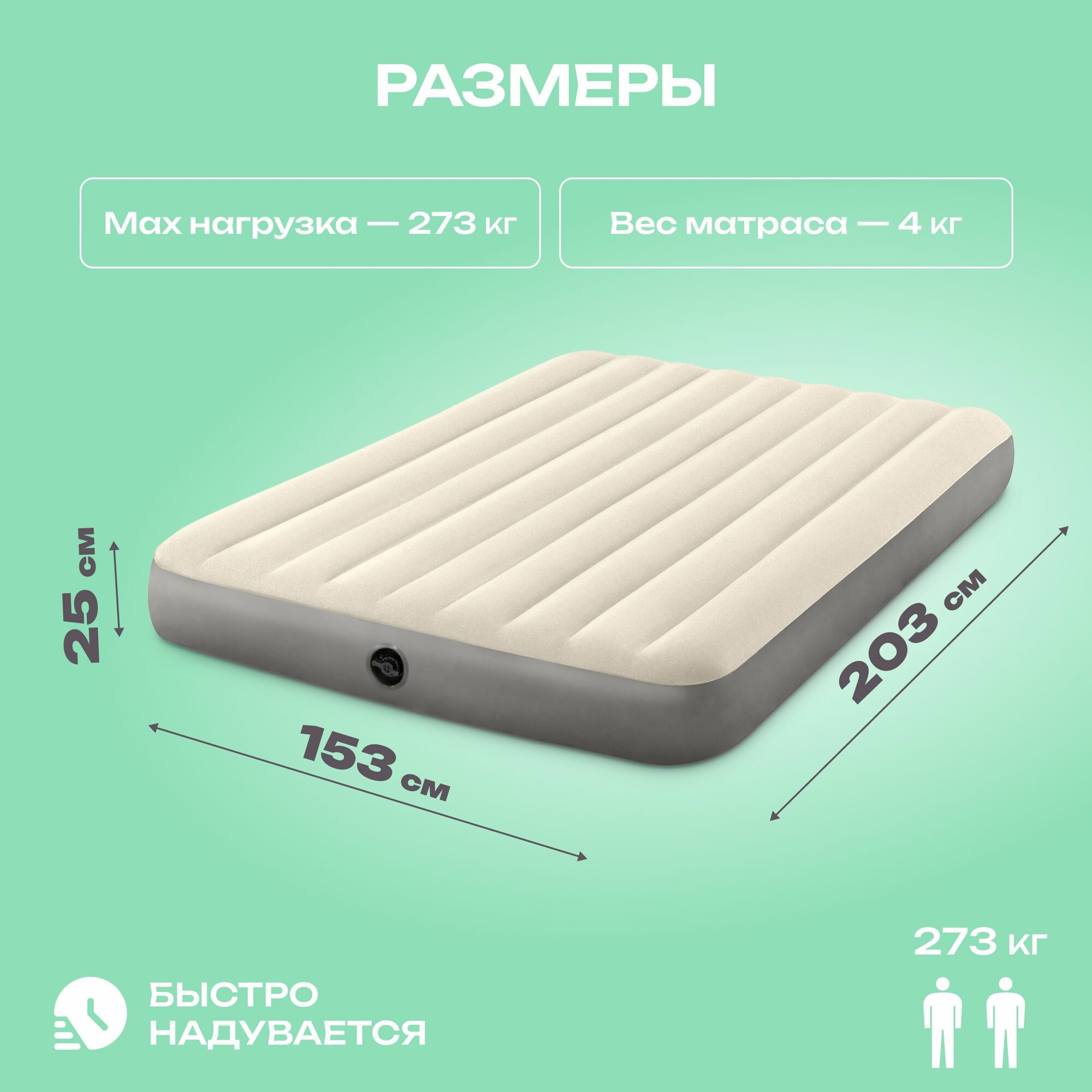 Матрас надувной Intex двуспальный 203х153 см, бежевый, 64103 информация: