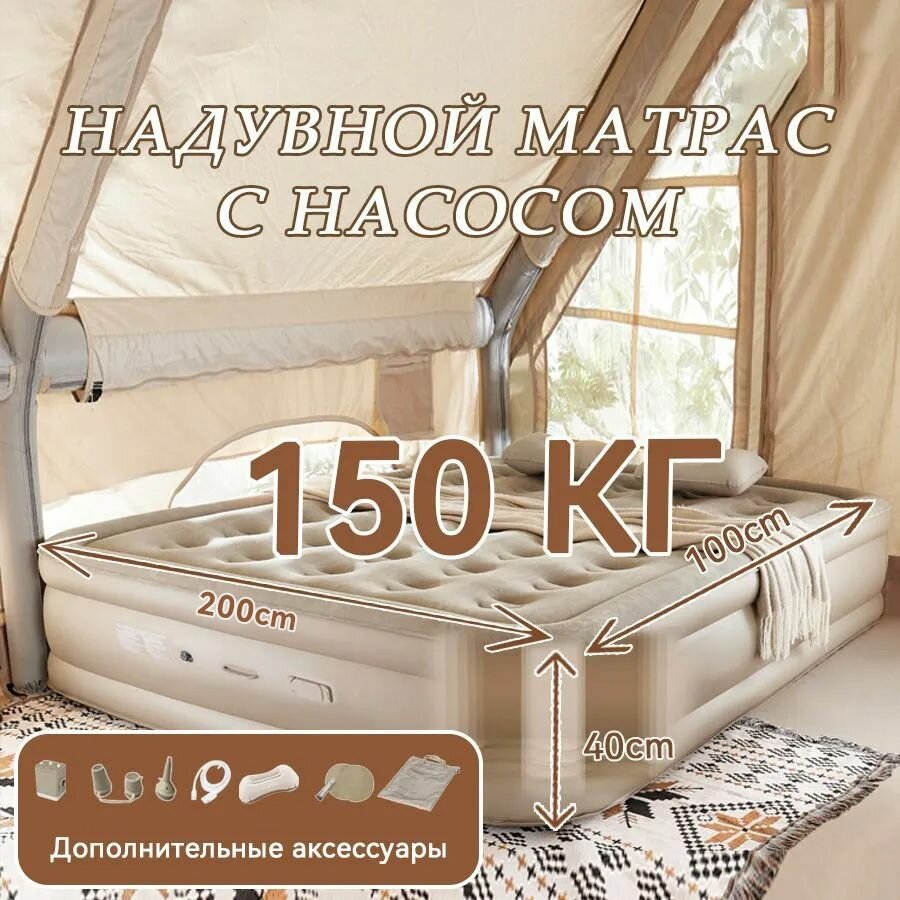 Матрас Надувной С Насосом, ShopGo 100х200х40 Туристический С Насос Встроенный Электрический, ПВХ И Флок, Макс Вес-150 КГ информация: