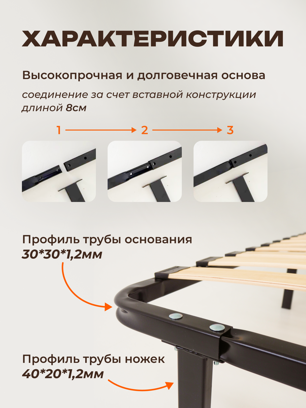 Разборное металлическое основание для кровати 120x200 с ламелиями и ножками