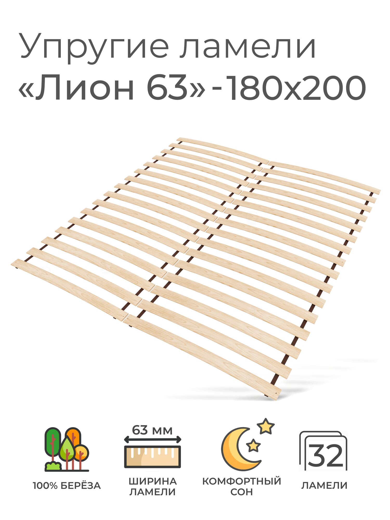 Упругие ламели "Лион 63", 180х200 (ортопедическое основание для кровати, ламели 700 мм, реечное дно, основа под матрас односпальной кровати) информация: