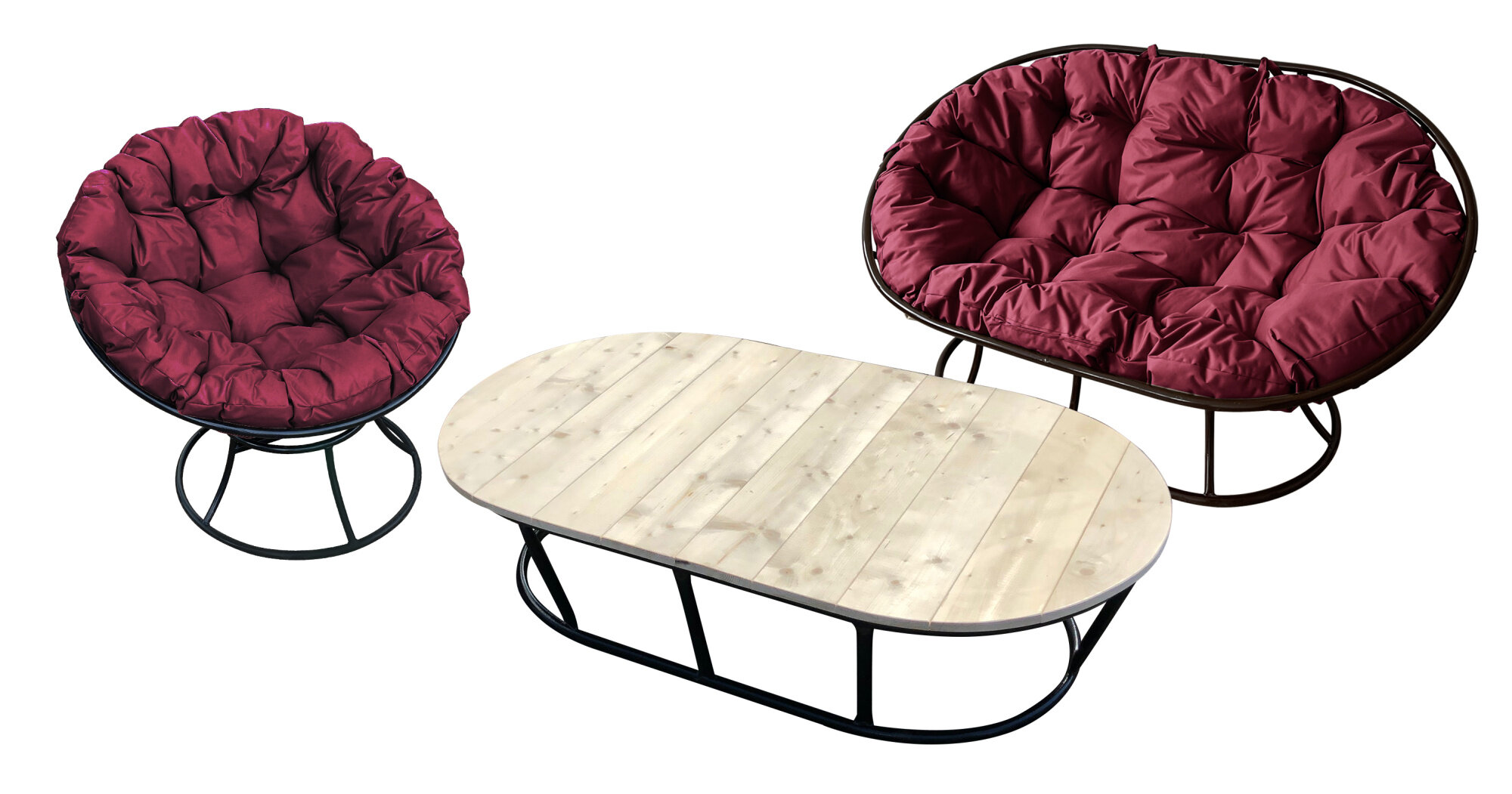 Отзывы на Комплект M-group Мамасан, Папасан и стол без ротанга чёрное бордовая подушка