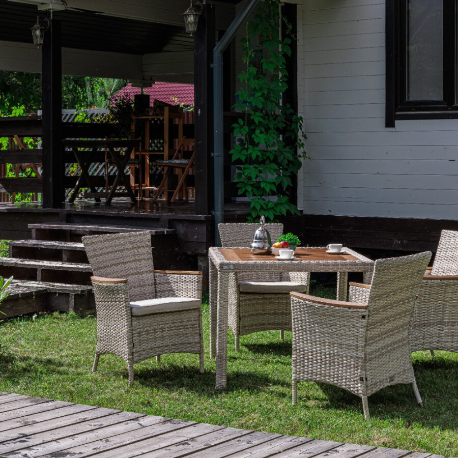 Отзывы на Обеденный комплект ROYAL FAMILY AMELIA на 4 персон Ротанг: Бежевый/Подушки: Бежевые
