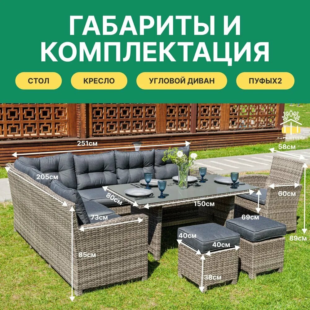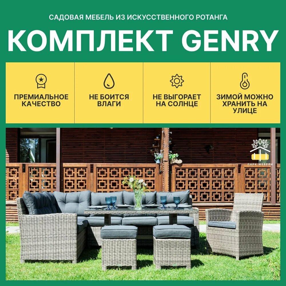 Комплект мебели RoyalFamily Genry, искусственный ротанг, для улицы, серо-коричневое плетение информация: