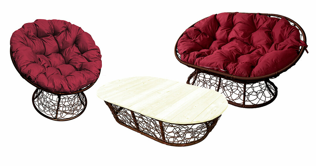 Комплект M-group Мамасан, Папасан и стол с ротангом коричневое бордовая подушка информация: