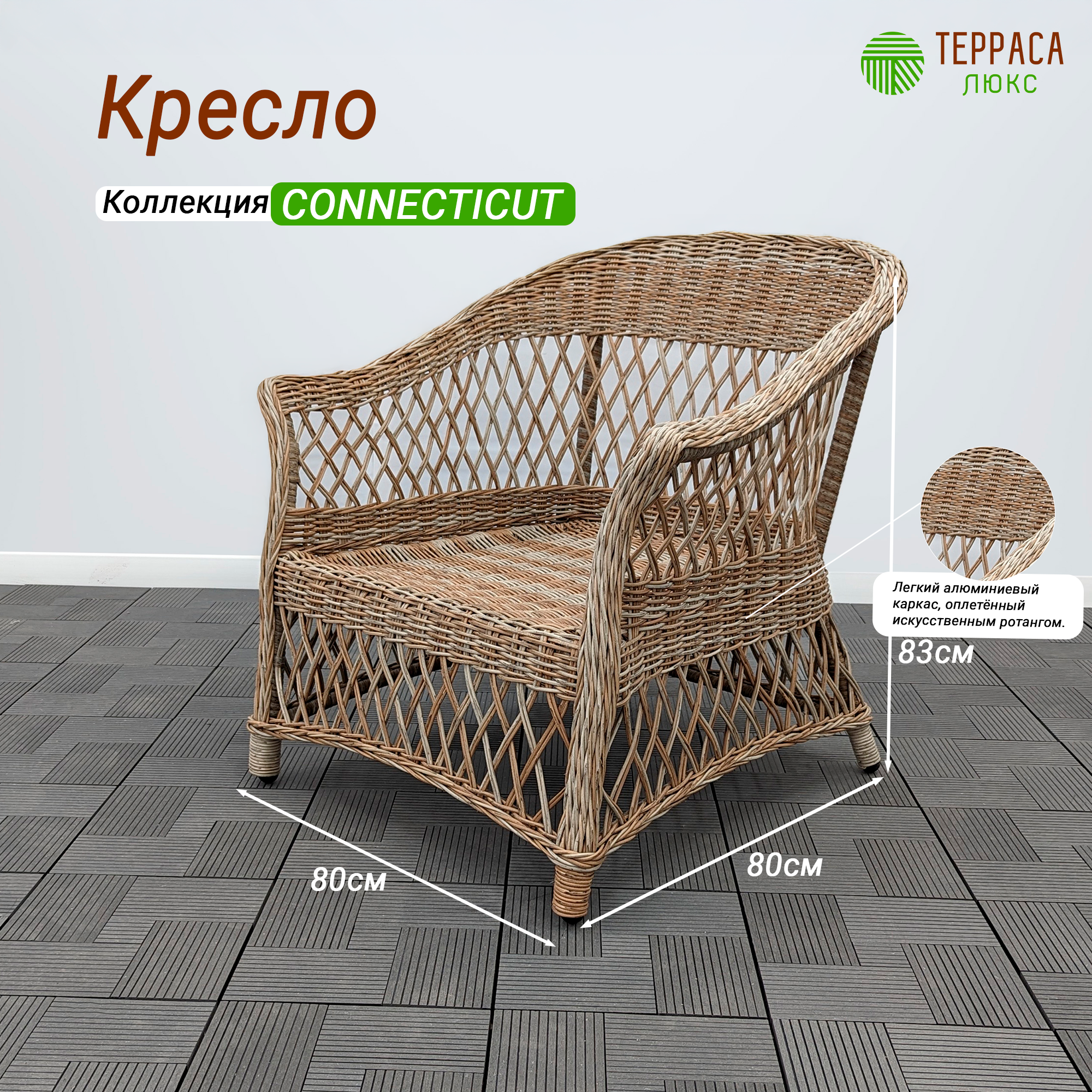 Комплект садовой мебели для улицы Connecticut (софа + 2 кресла + стол кофейный) натуральный информация: