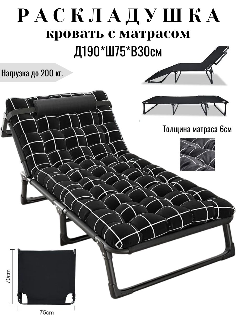 Раскладушка-кровать, с матрасом и подголовником, сталь/ткань, 190см x 75см x 30см информация: