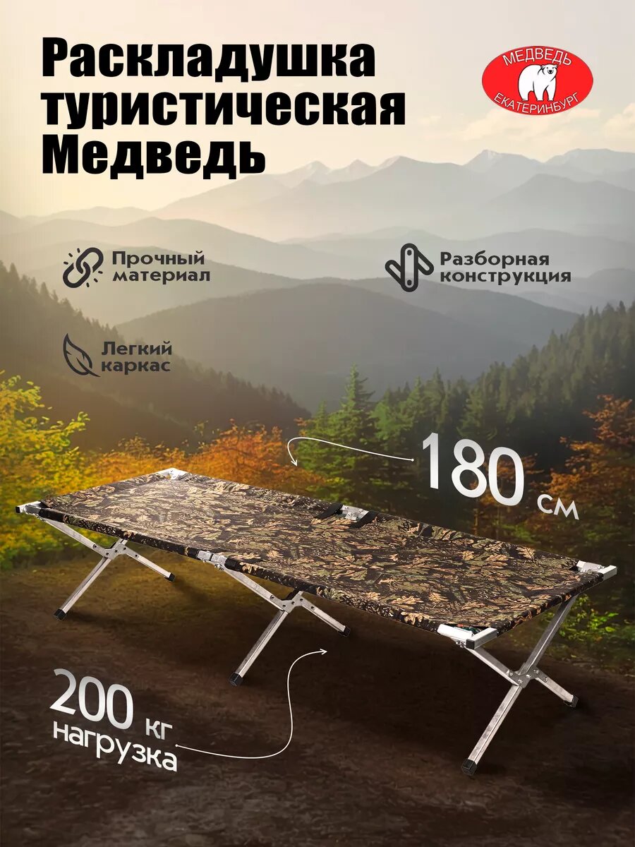 Раскладушка туристическая взрослая складная 180х65х40 см информация:
