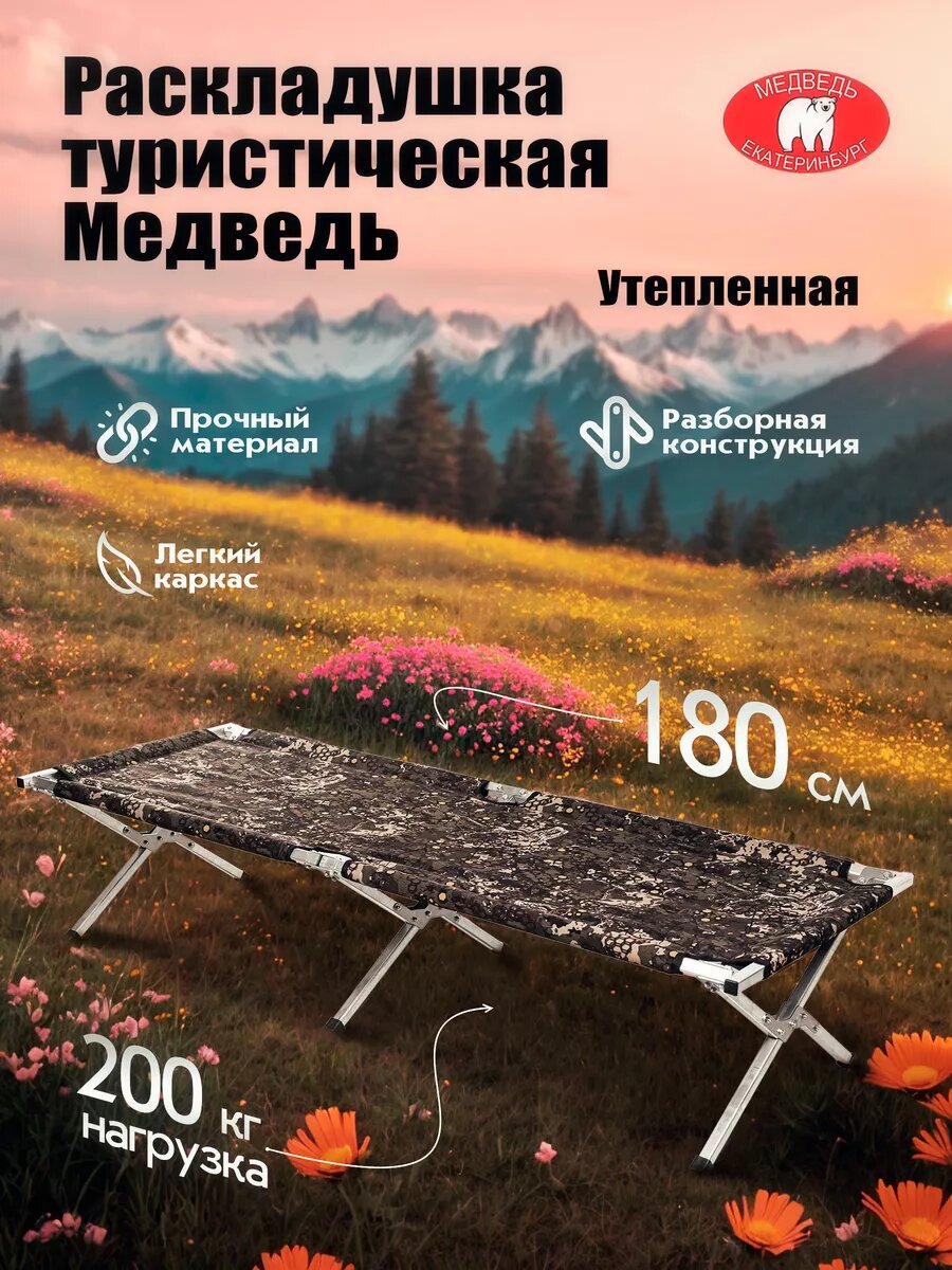 Раскладушка туристическая взрослая 180х65х40 см утепленная информация: