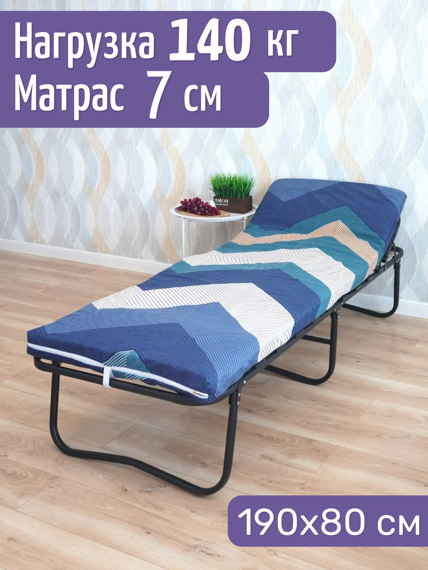 Раскладушка с матрасом "Новелла" с регулировкой шир. 80 см информация: