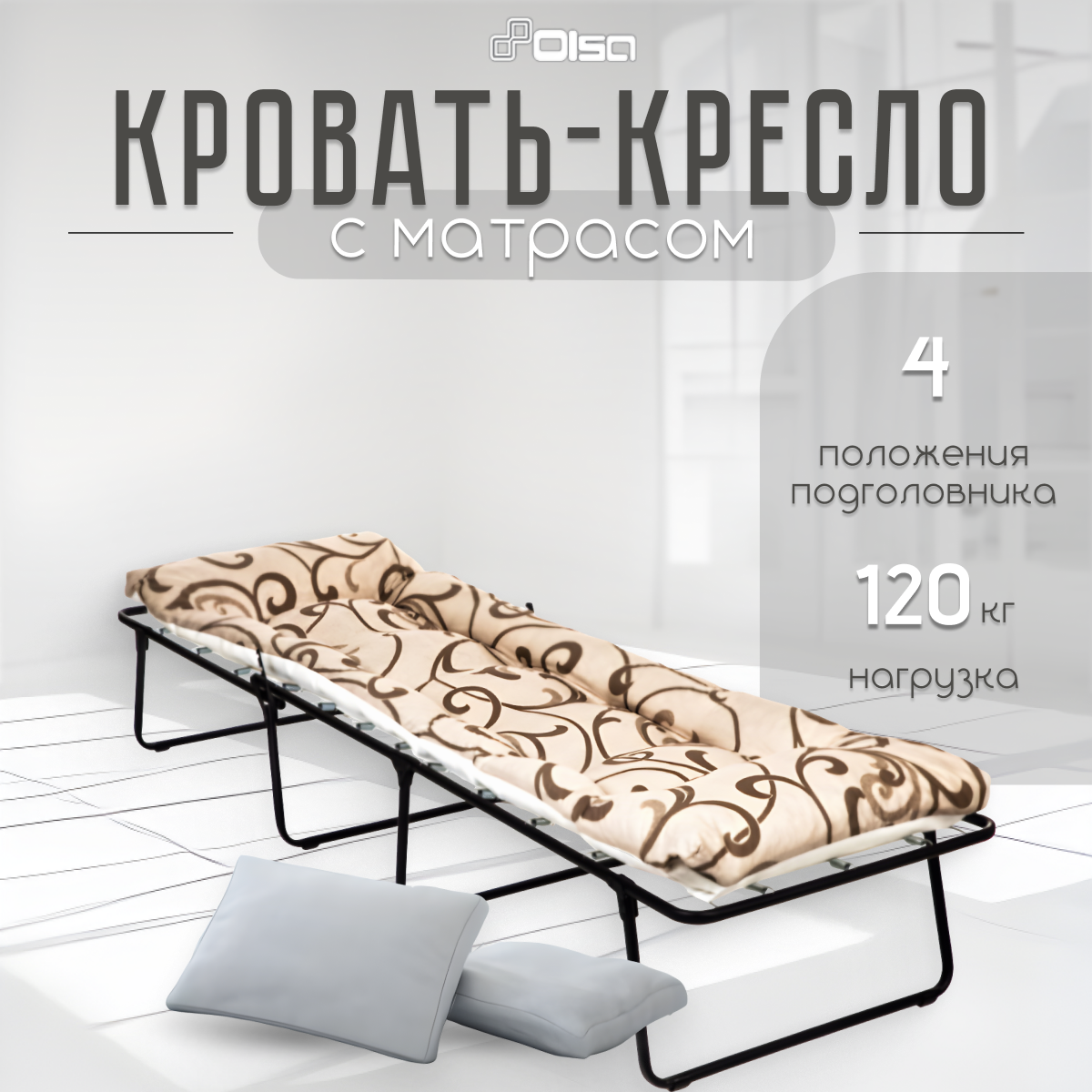 Раскладушка-кресло Olsa "Лира" 195 x 65 x 39,5 см, максимальная нагрузка 120 кг информация: