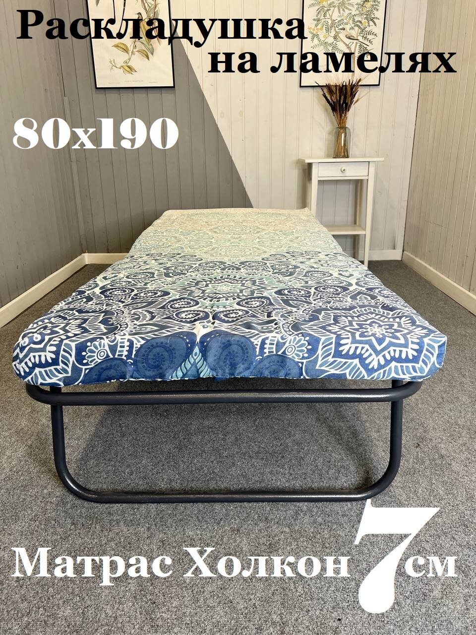 10 цен на Раскладушка на ламелях взрослая/ 80х190см/ с матрасом 7см/ до 120кг.