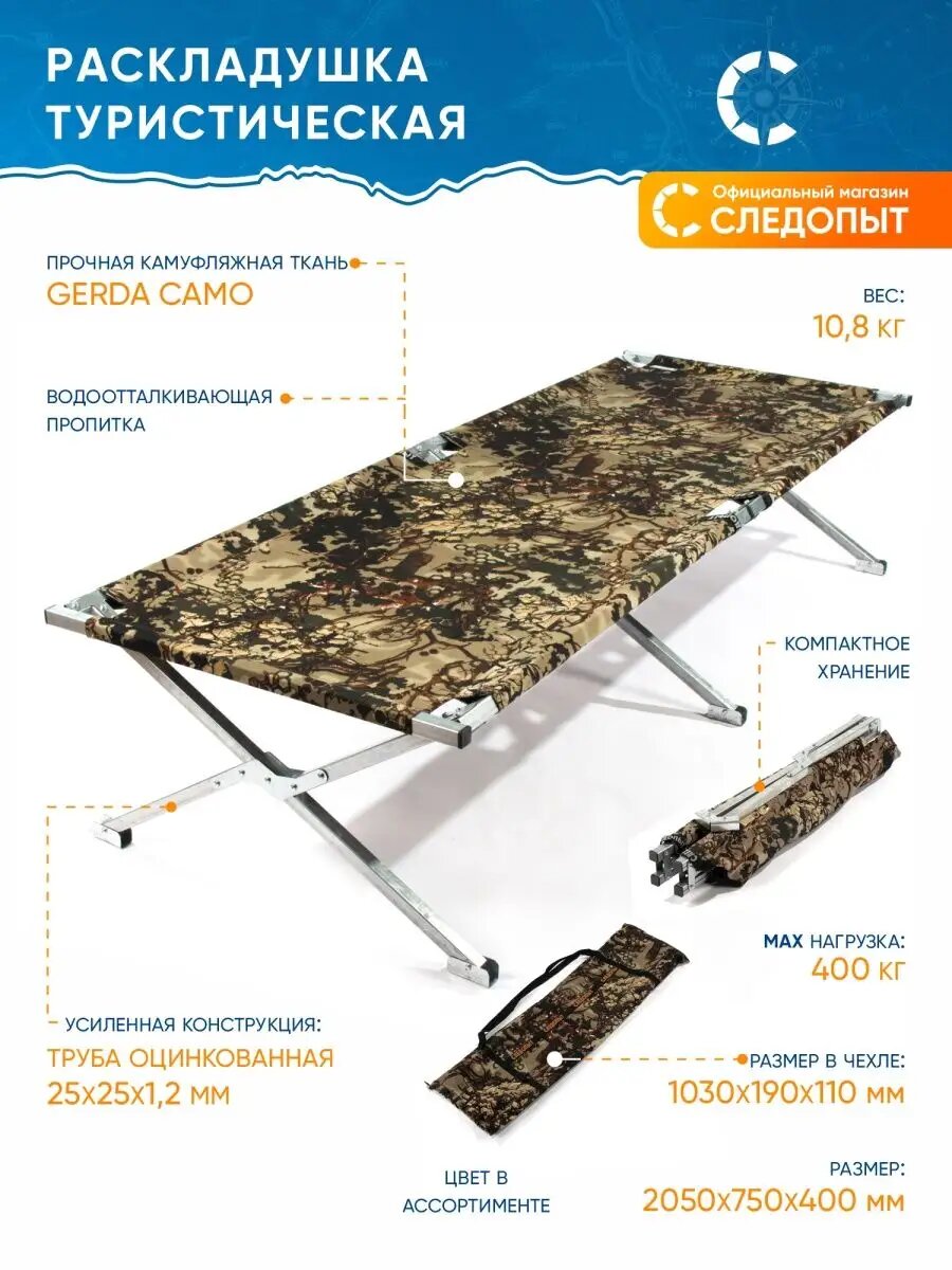 Раскладушка туристическая оцинкованная складная в чехле, кровать походная информация: