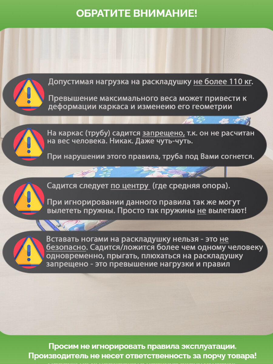 Раскладушка взрослая с матрасом 2 см , усиленная нагрузка до 110 кг информация: