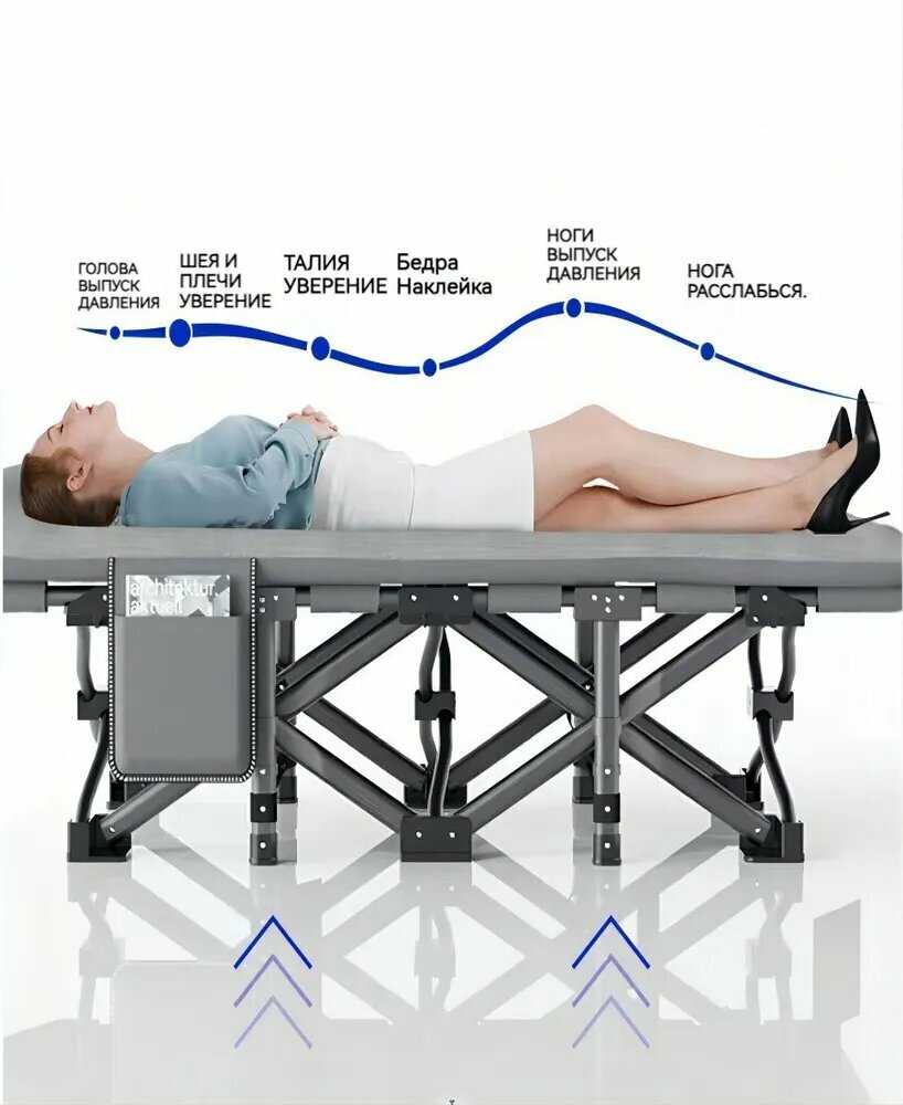 Отзывы на Раскладушка "Кемпинг", с матрасом, двухслойная ткань Oxford, 160 кг