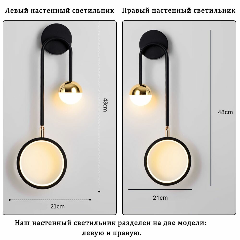 Светильник настенный, бра настенные, 6 Вт, 43 см, трехцветный меняющийся свет