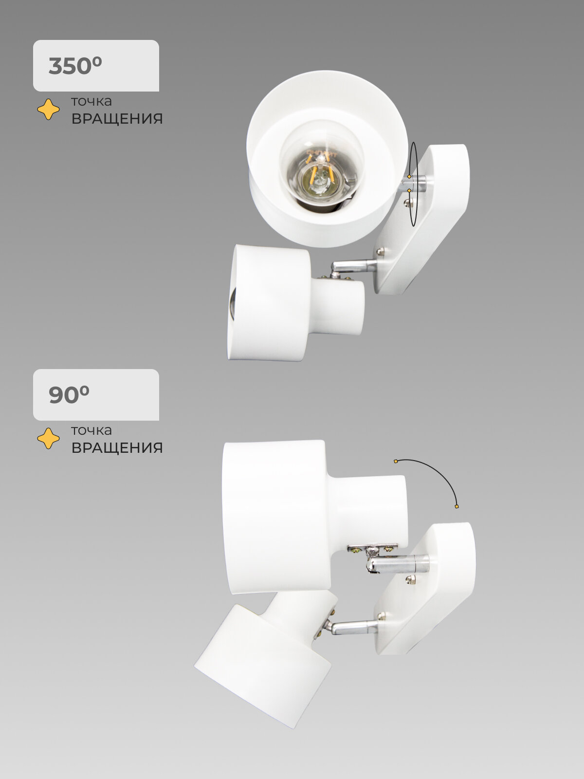 10 цен на Светильник настенный Спот 21 Век свет Лофт 2 лампы Белый Е27, площадь освещения 10 м²