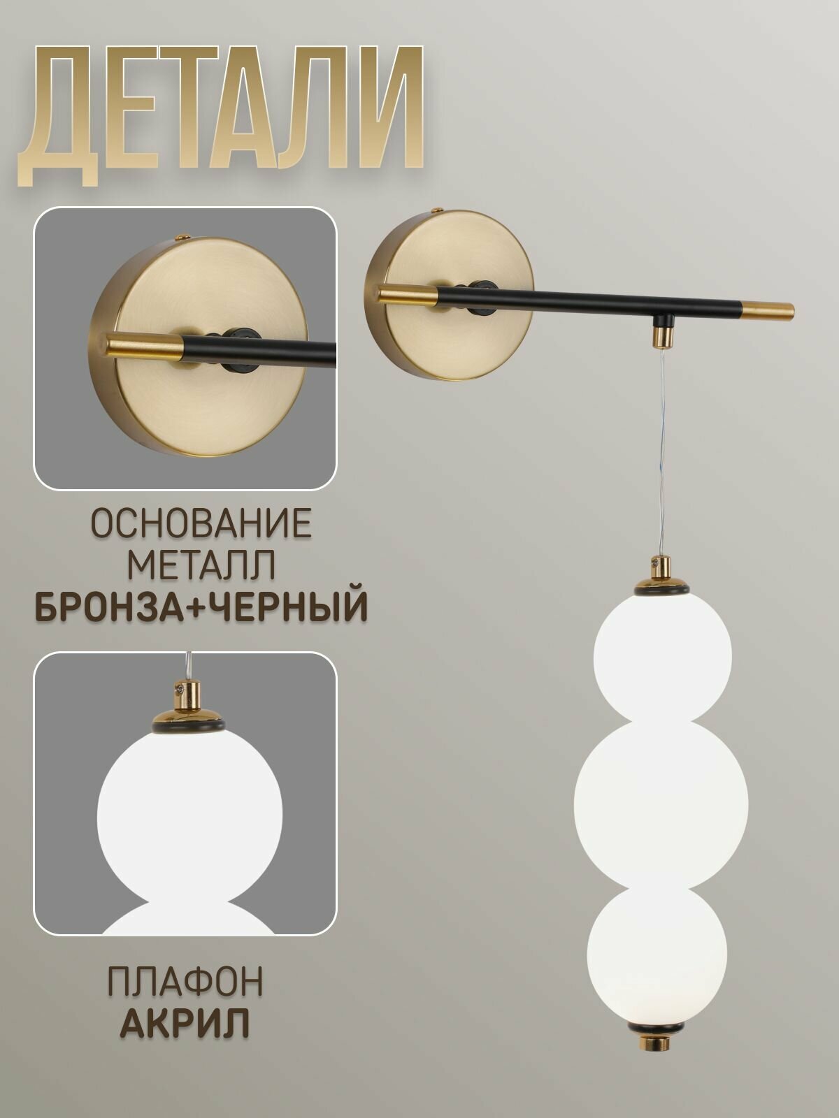 Светильник настенный, бра настенные, 6 Вт, 43 см, трехцветный меняющийся свет