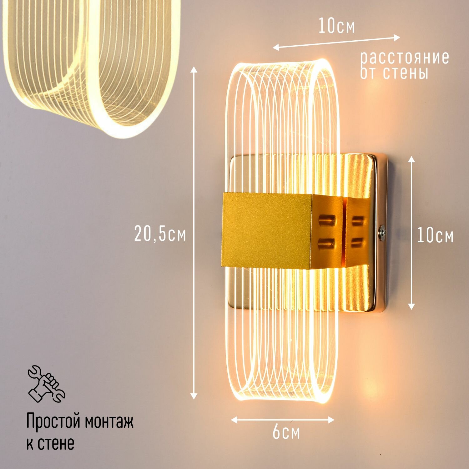 Светильник настенный, бра настенные, 6 Вт, 43 см, трехцветный меняющийся свет
