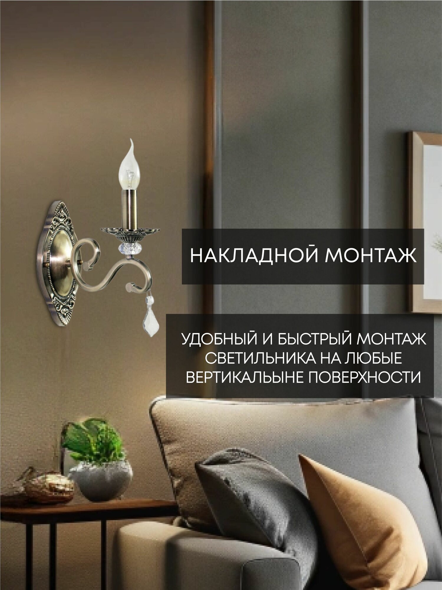 Бра настенный светильник светодиодный бронза/хрусталь 1х40W Е14 информация: