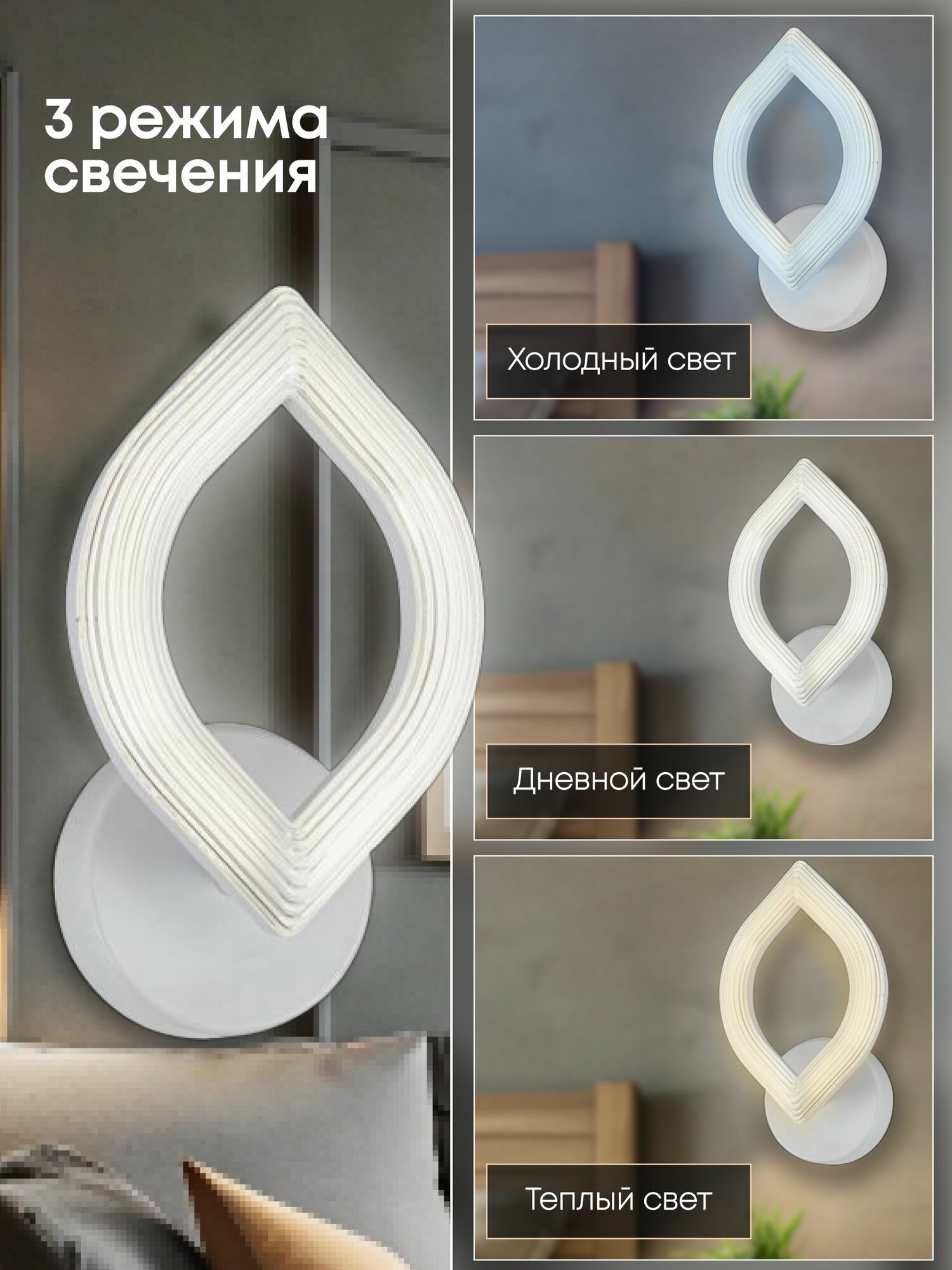 Бра настенный светильник светодиодный LED 16Вт 3000K-6000K белый 2 128 ₽